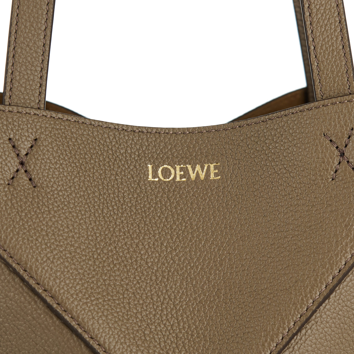 A refined leather tote that marries architectural elegance with everyday practicality. The soft grained calfskin body — stitched in signature puzzle-style geometric panels — forms a structured silhouette that folds completely flat, making it ideal for travel or city commutes. With double top handles and a roomy interior, this tote transitions effortlessly from workday errands to weekend outings, offering subtle luxury and versatility.
