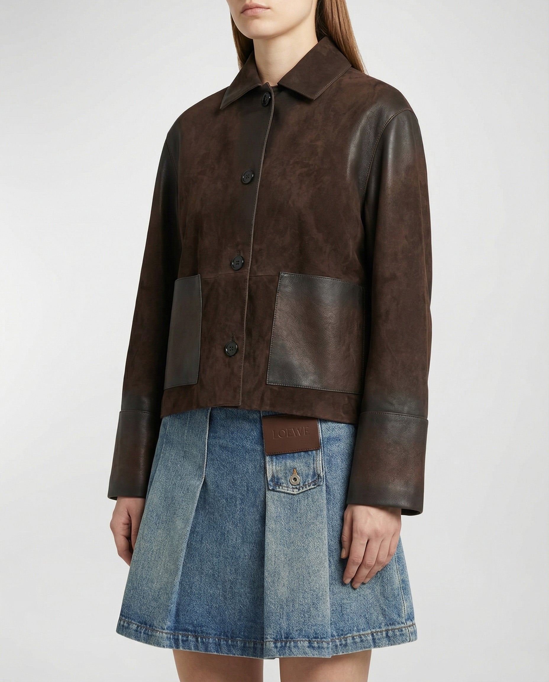 A luxurious outerwear piece that combines tactile suede with Loewe’s signature modern tailoring for effortless sophistication.