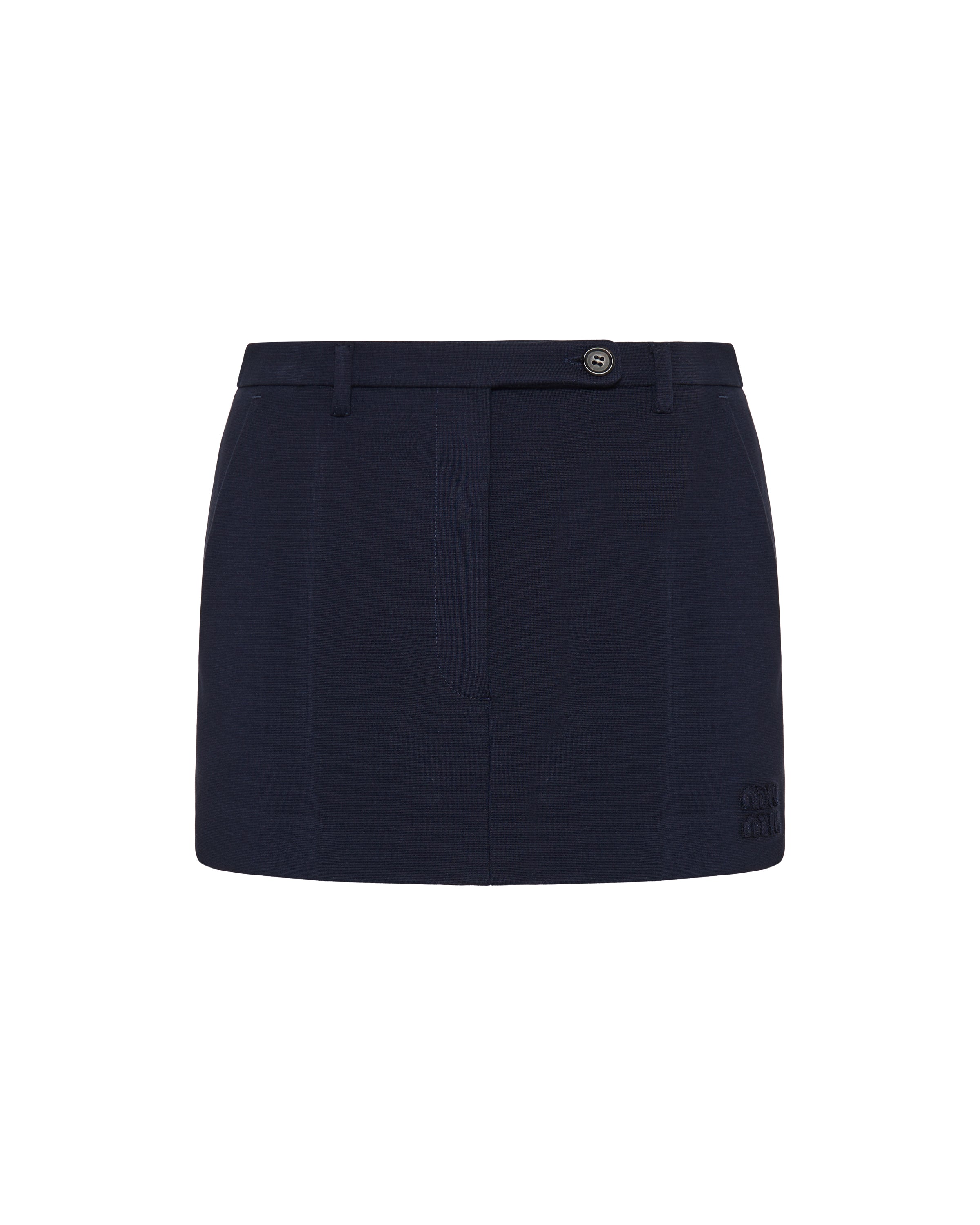 Clean and refined, this mini skirt embodies Miu Miu’s modern take on classic tailoring. Crafted in a structured technical-viscose blend, it features a sleek low-rise silhouette with precise seams and discreet logo embroidery at the hem. Designed to balance femininity with sharp minimalism, it is suitable for everyday wear, polished daytime looks, and contemporary city styling with a subtle, sophisticated edge.