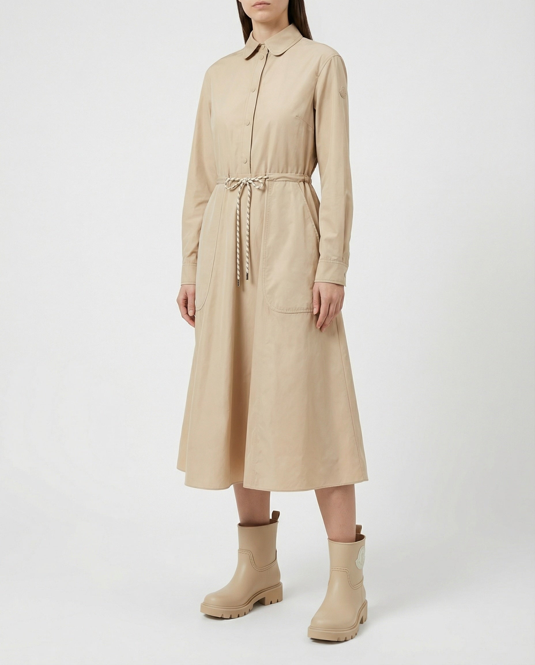 A refined shirt dress that combines crisp tailoring with Moncler’s signature understated elegance for a versatile, polished look.