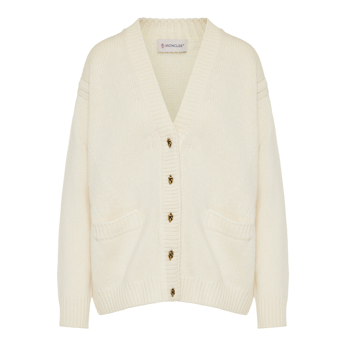 A refined wool‑cashmere V‑neck cardigan by Moncler, ideal for elevated casual or smart‑casual wardrobes. Its soft knit construction and timeless silhouette deliver understated luxury, perfect for layering over refined outfits during cooler seasons. The subtle mix of knitting techniques adds texture and depth for a polished, elegant result.