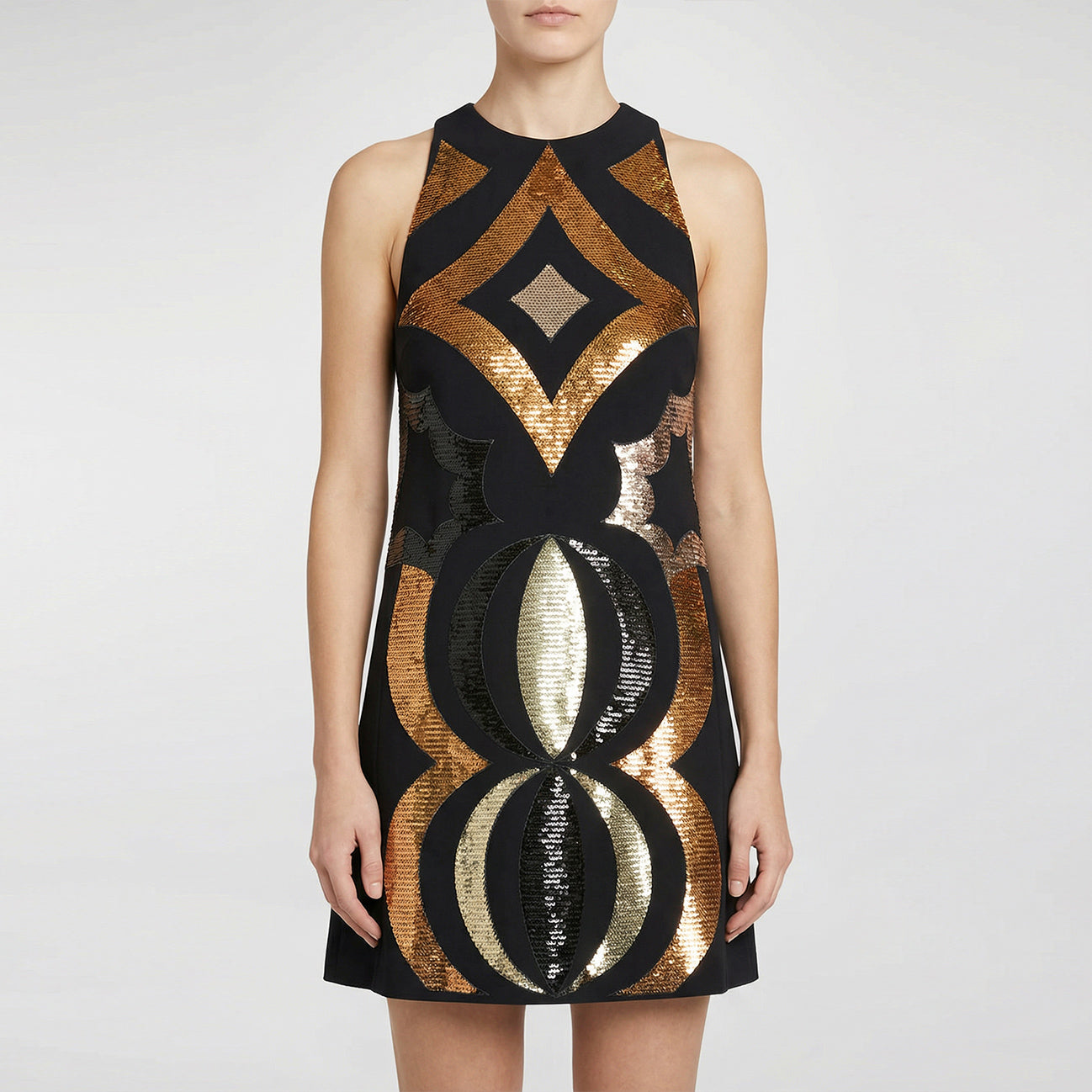 This Pucci sleeveless dress is crafted from silk‑blend fabric, featuring an intricate Collane embroidery detail along the neckline, a straight silhouette, and concealed back zip closure. Elegant yet wearable, it suits formal occasions and upscale daytime events, combining artisanal embellishment with refined simplicity.