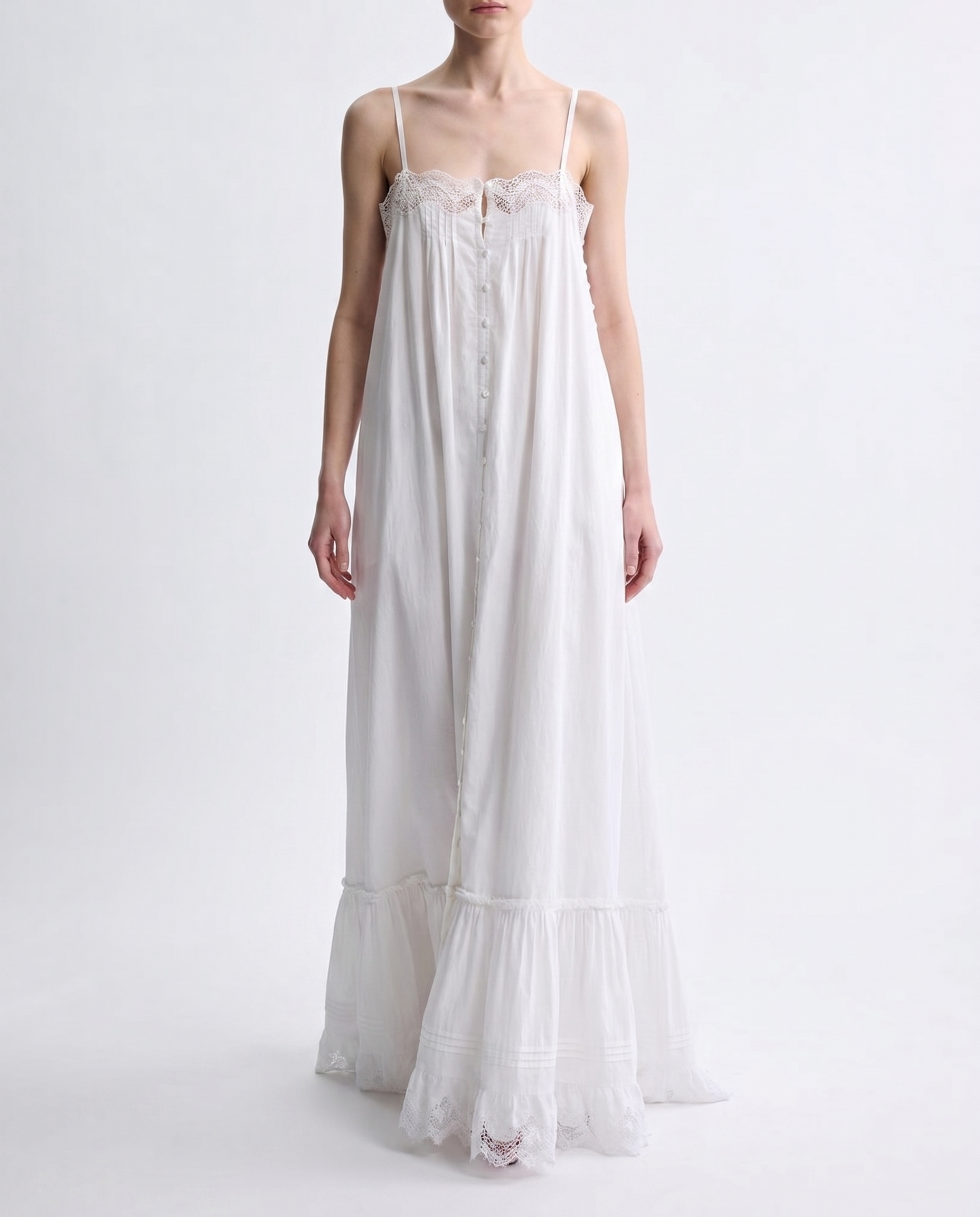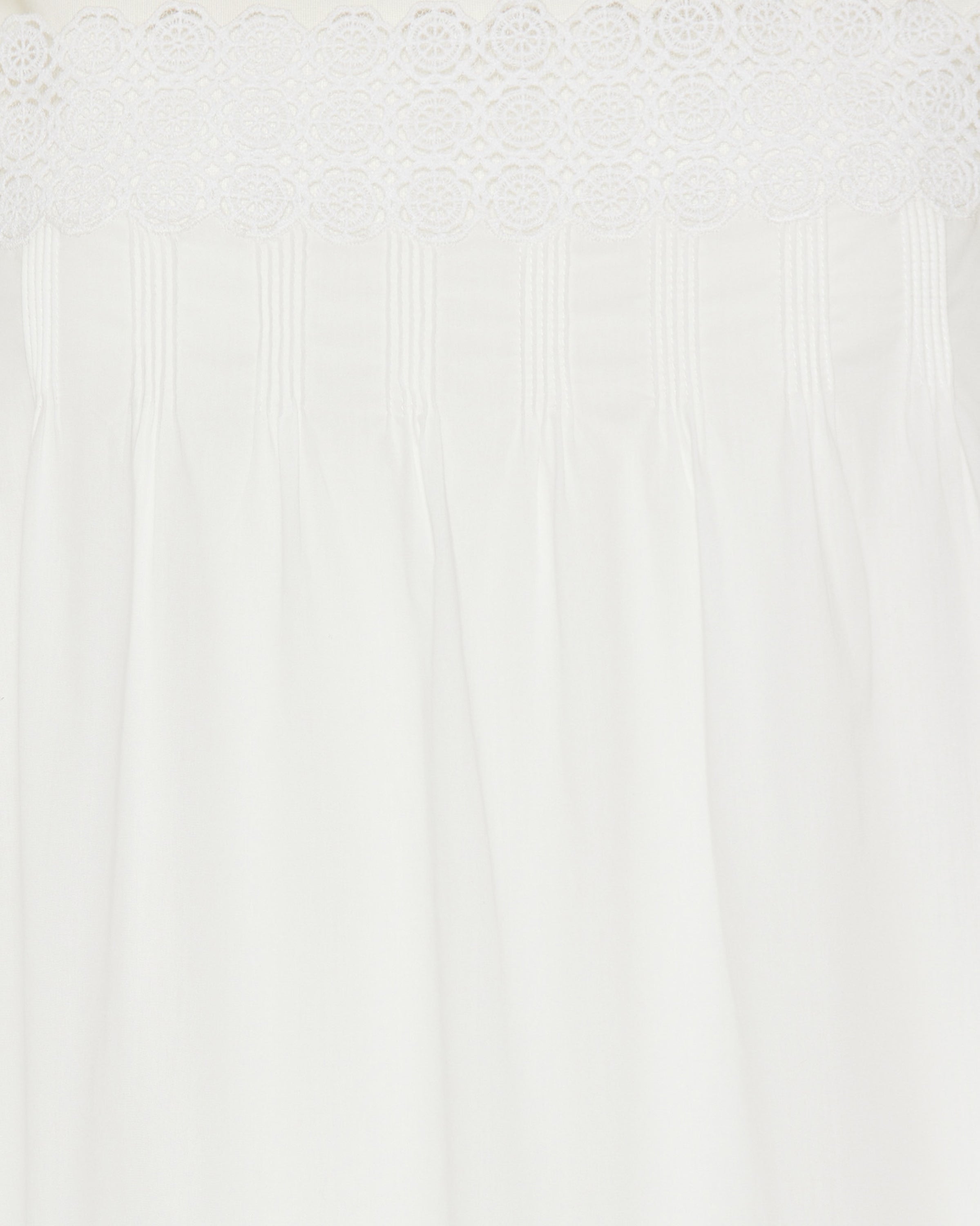 A timeless silhouette elevated through delicate embroidery and crisp structure, balancing femininity with understated elegance.