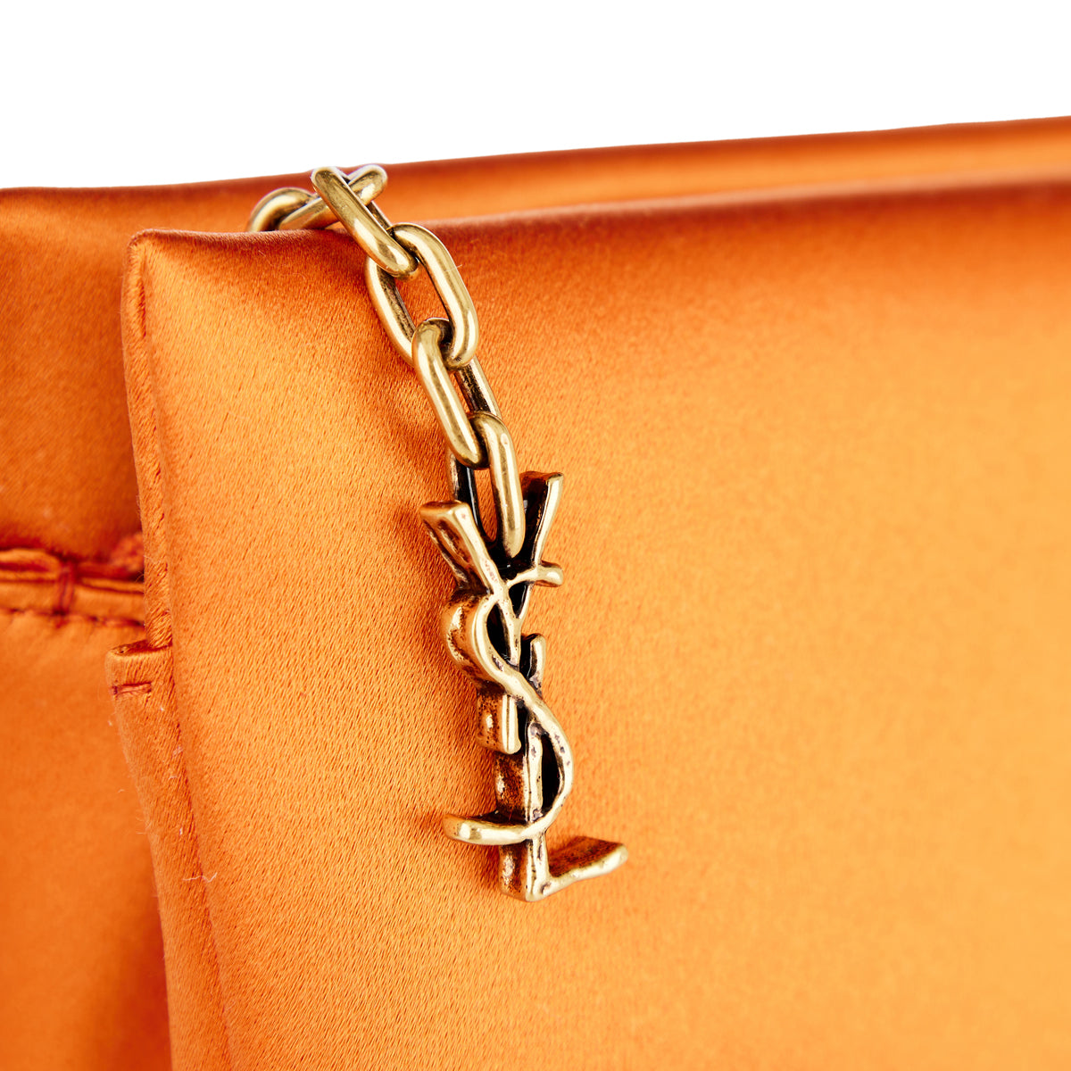 This elegant clutch from Saint Laurent is crafted from luxurious satin and adorned with the iconic hammered Cassandre charm. Its minimalist design and soft silhouette make it an ideal accessory for formal occasions and evening events.