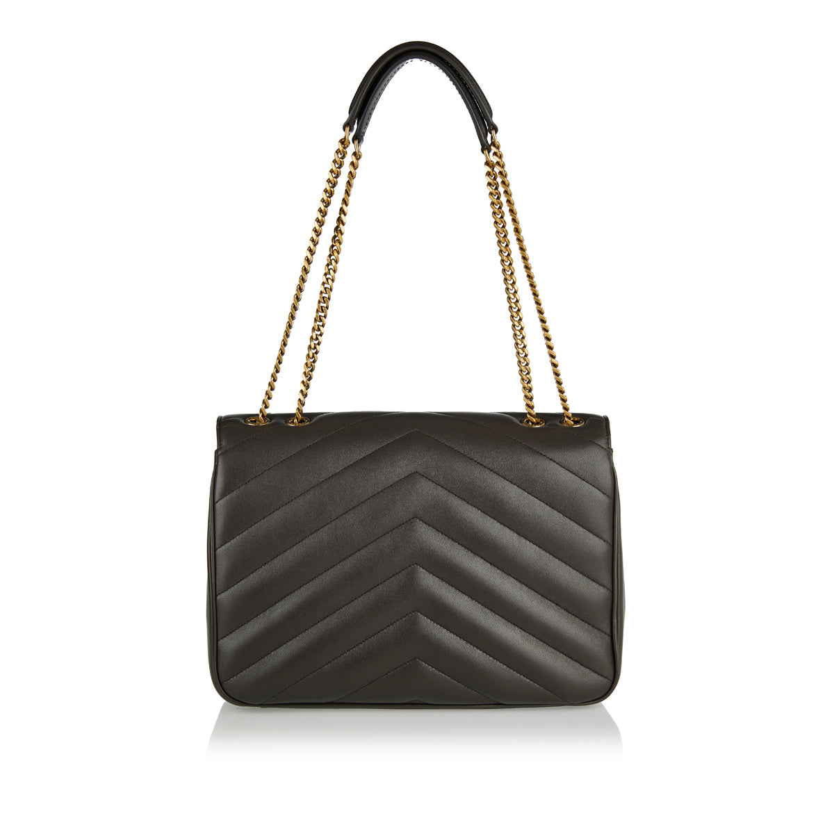 The Loulou large shoulder bag by Saint Laurent embodies the house’s Parisian glamour with a modern sensibility. Crafted in soft grey matelassé lambskin, its oversized silhouette is defined by chevron quilting and the signature YSL monogram in tonal hardware. A versatile design, it offers both elegance and functionality, making it the perfect companion for refined everyday wear and sophisticated evening looks.