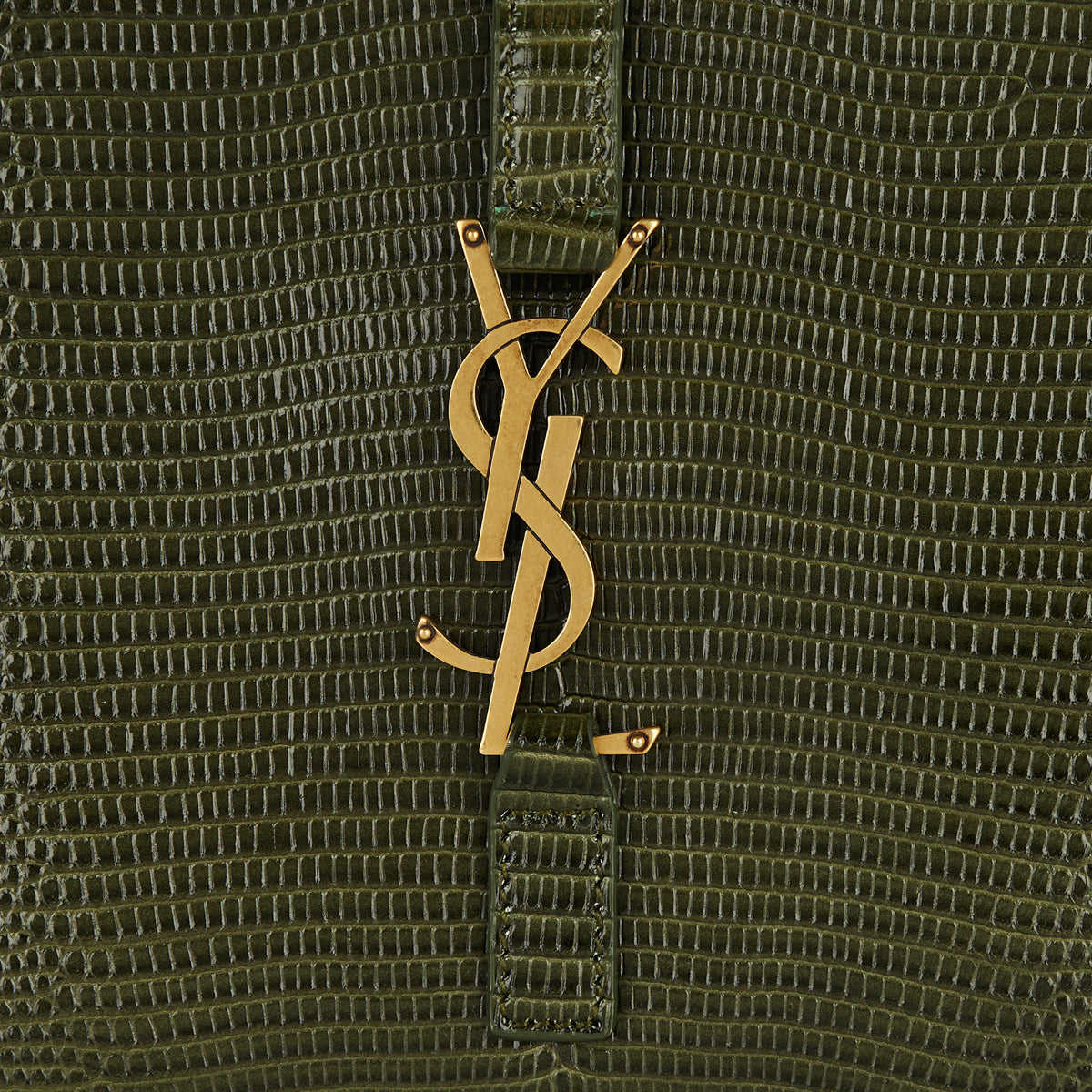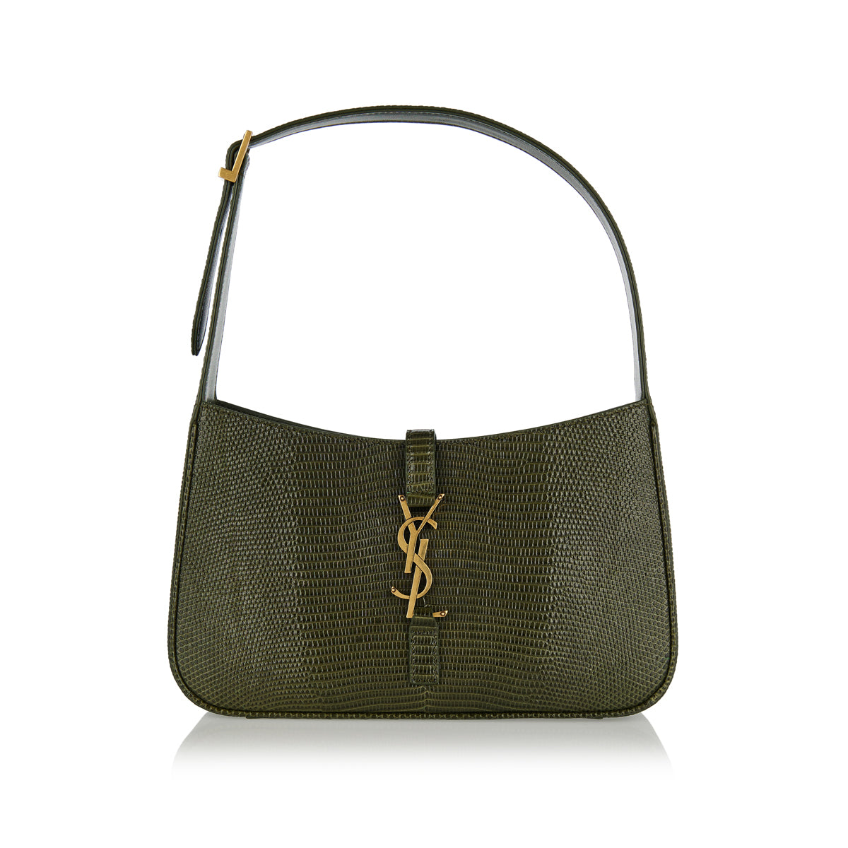 The Saint Laurent Le 5 à 7 shoulder bag is crafted from luxurious lizard-embossed calfskin. Featuring the signature Cassandre logo tab closure and an adjustable strap, it’s the perfect balance of timeless sophistication and modern allure.