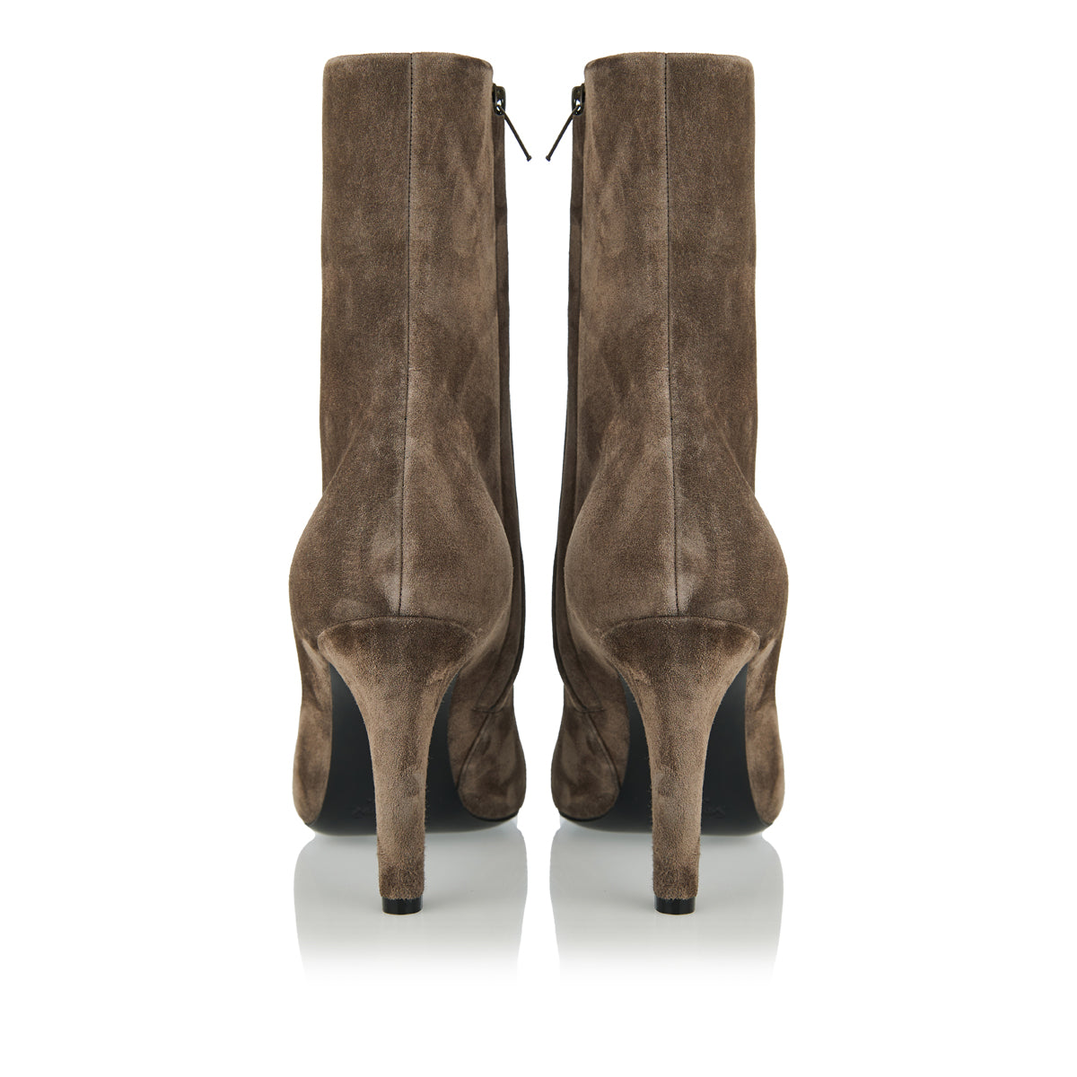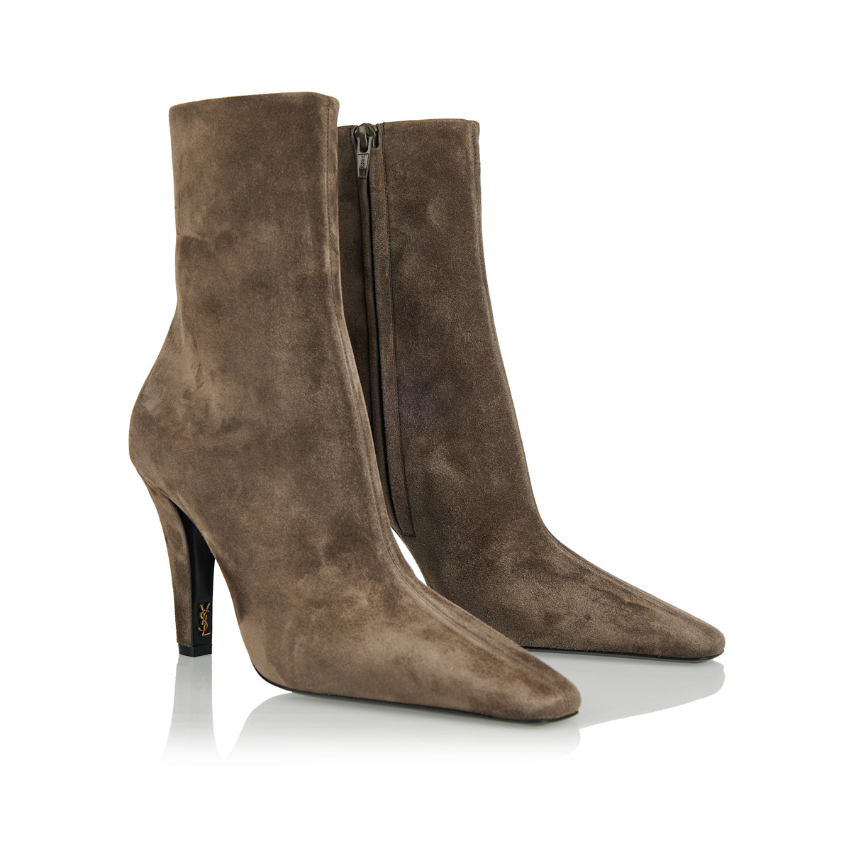 Saint Laurent’s Jill booties are crafted in supple suede with a sleek, pointed-toe silhouette that elongates the leg. Set on a slim stiletto heel, they strike the perfect balance between elegance and modern allure, making them a versatile choice for both day and evening looks.