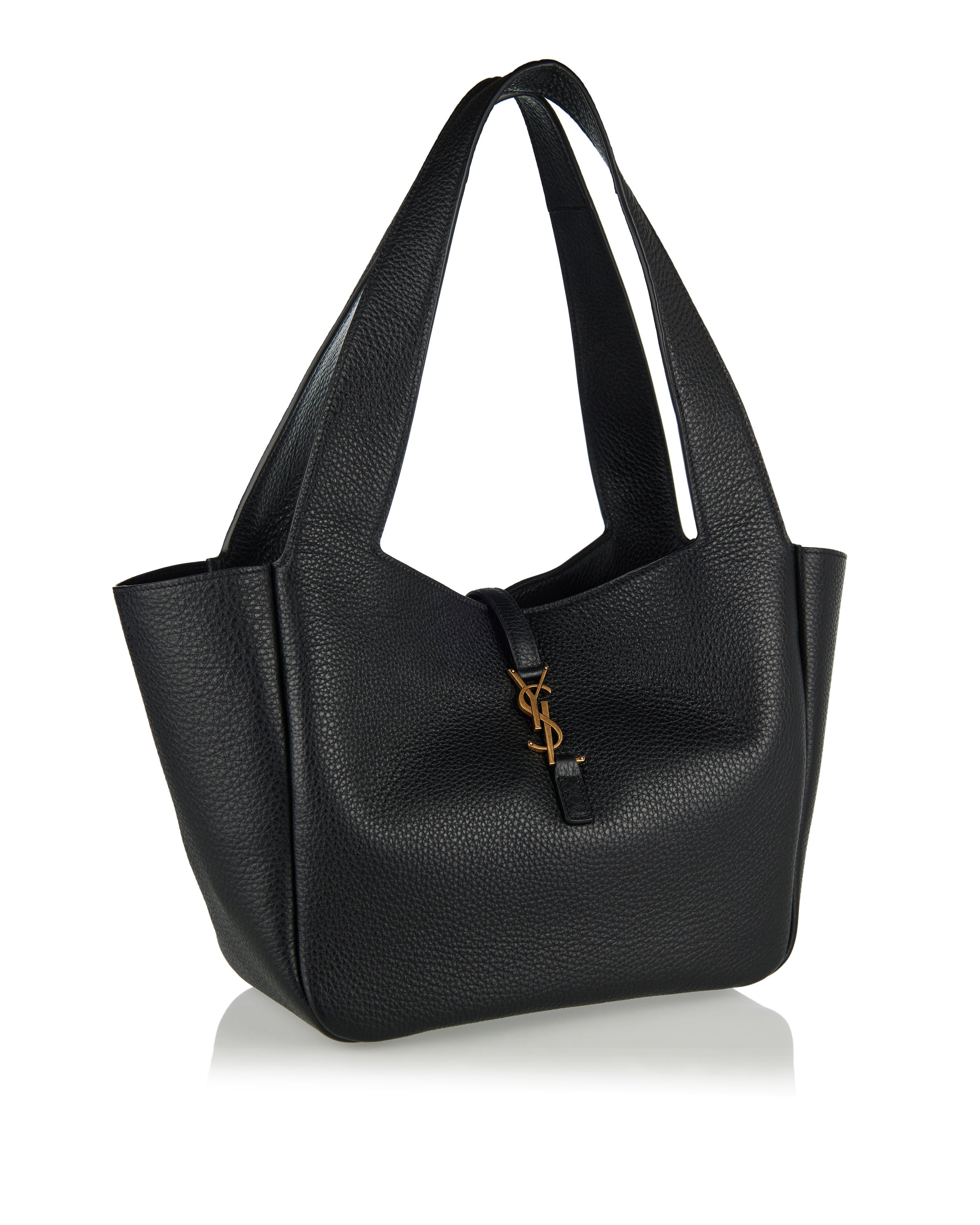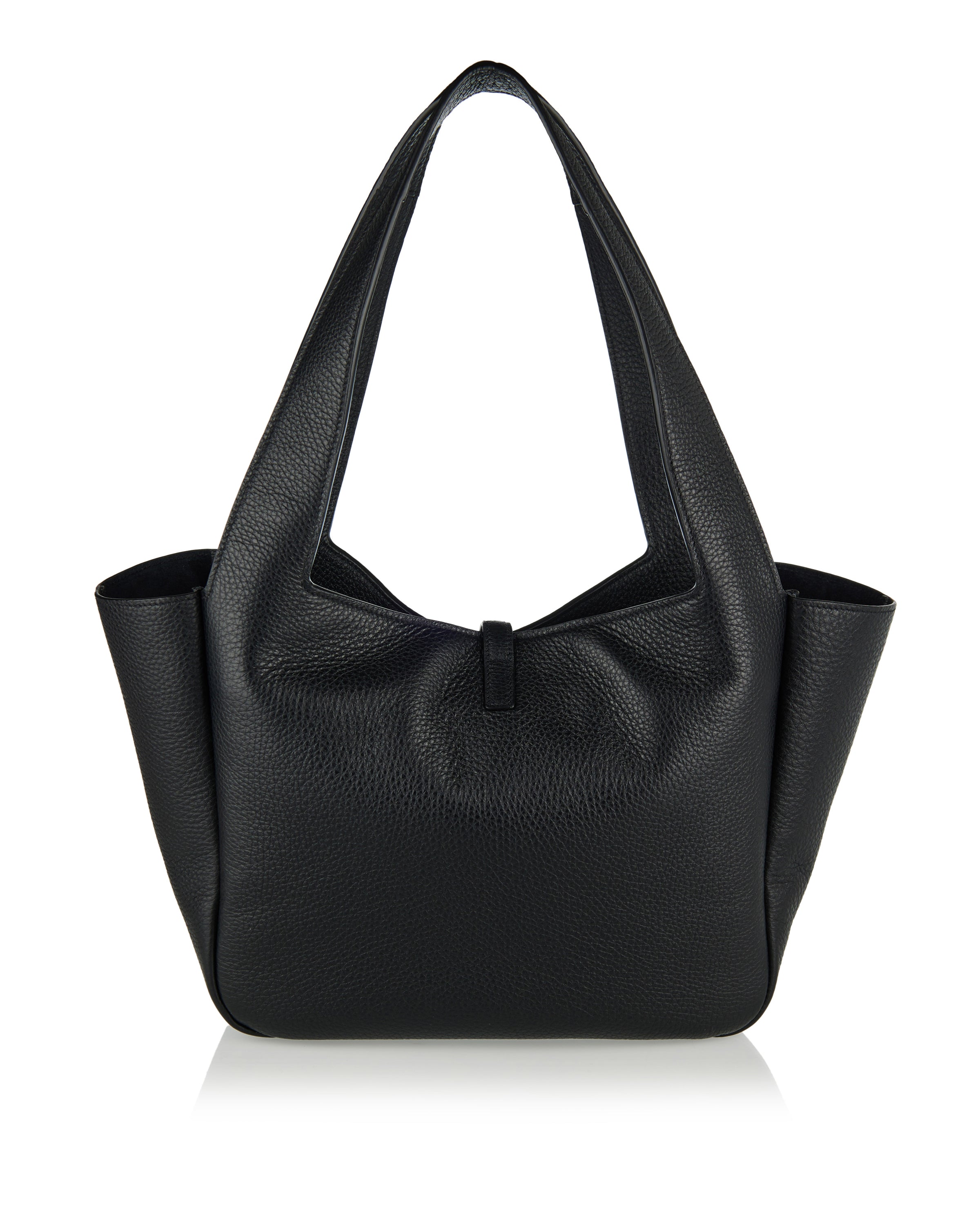 A spacious tote in grained leather, defined by a structured silhouette and refined, minimalist lines.