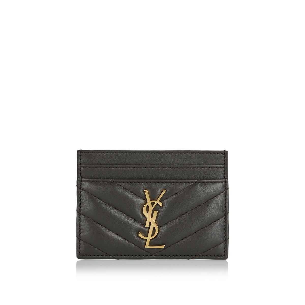 Embellished with the iconic Cassandre emblem in gold metal, this card case in grey leather features five sleek card slots for daily essentials.
