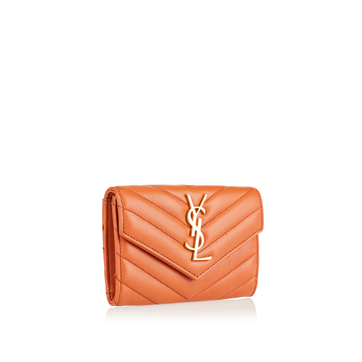 Luxury Saint Laurent Cassandre Matelassé small wallet in leather, featuring chevron-quilted overstitching and the iconic Cassandre logo for refined organization.
