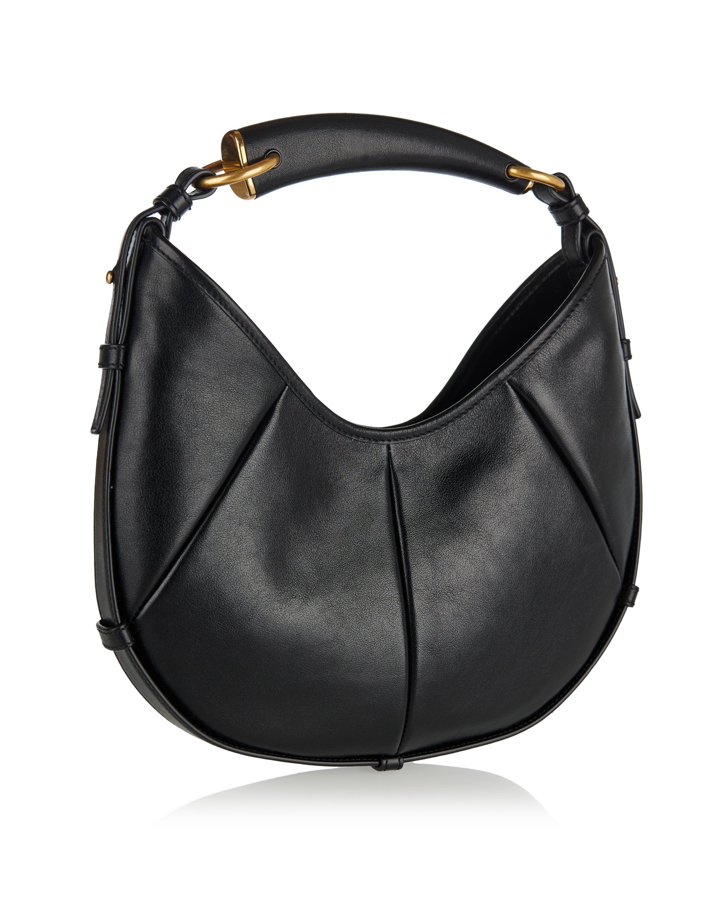 Compact shoulder bag crafted from smooth leather, defined by the signature sculptural handle that reinterprets the iconic Mombasa silhouette. A bold yet refined accessory that blends statement design with everyday functionality.- Smooth leather construction
