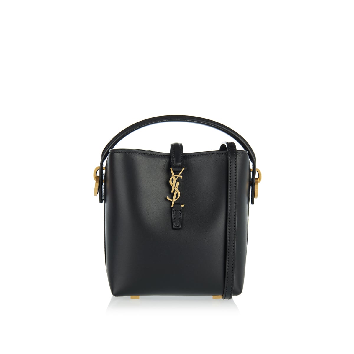A refined leather bucket bag in a compact silhouette, designed for effortless elegance. Features a structured handle and detachable shoulder strap for versatile styling, secured by an iconic Cassandre hook closure. The perfect balance of practicality and understated luxury.