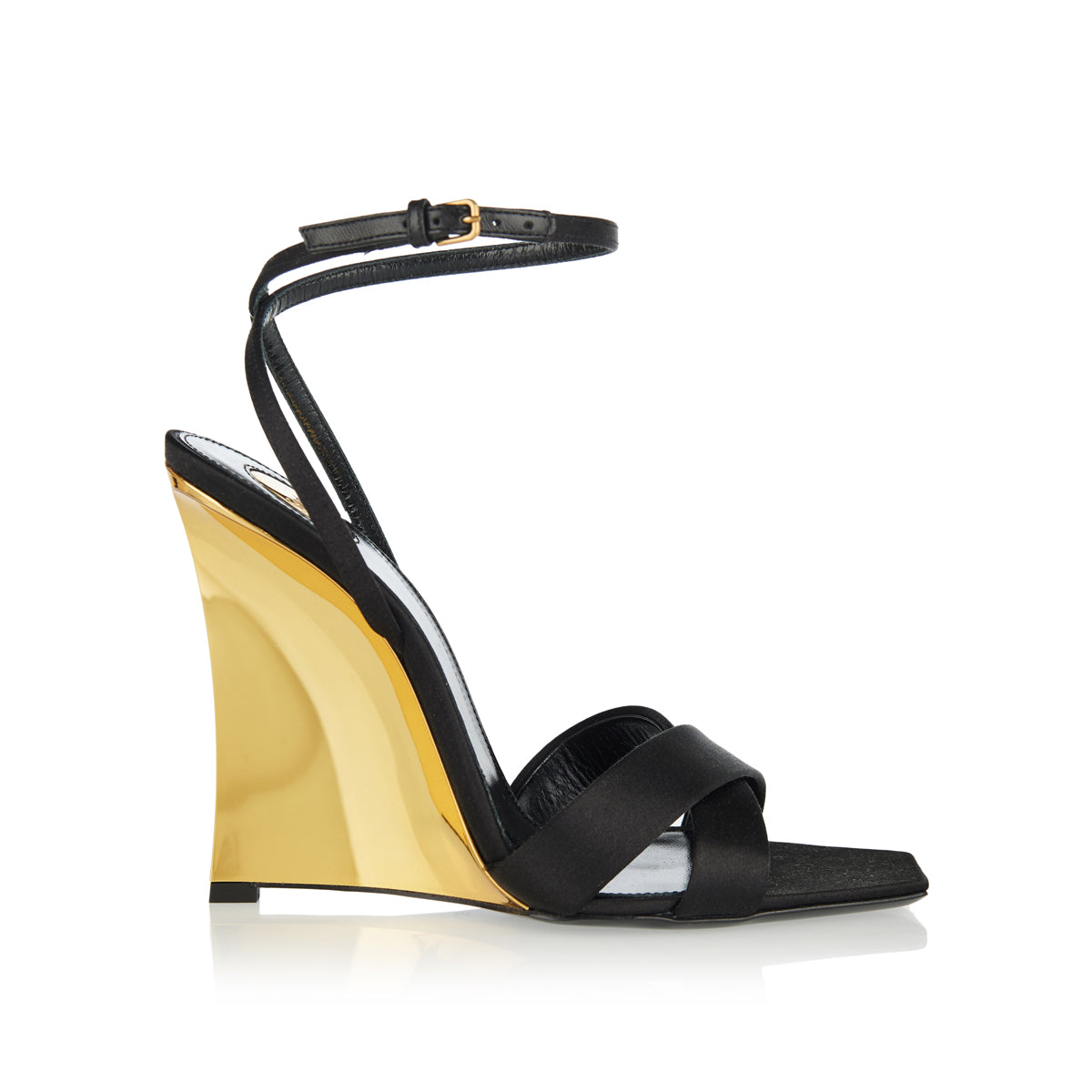Elevate your style with the Saint Laurent Lucienne wedges, a captivating fusion of modern design and timeless elegance.