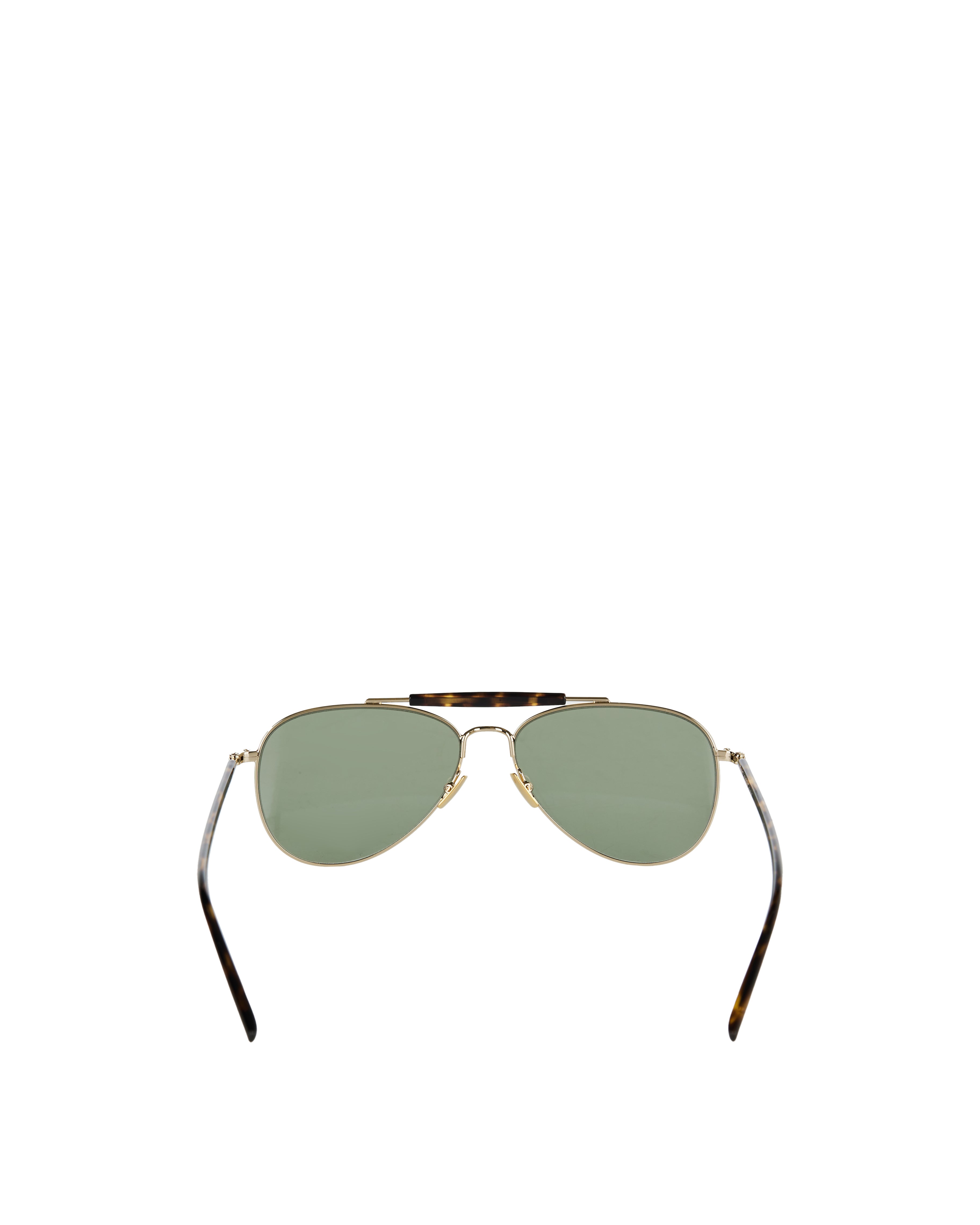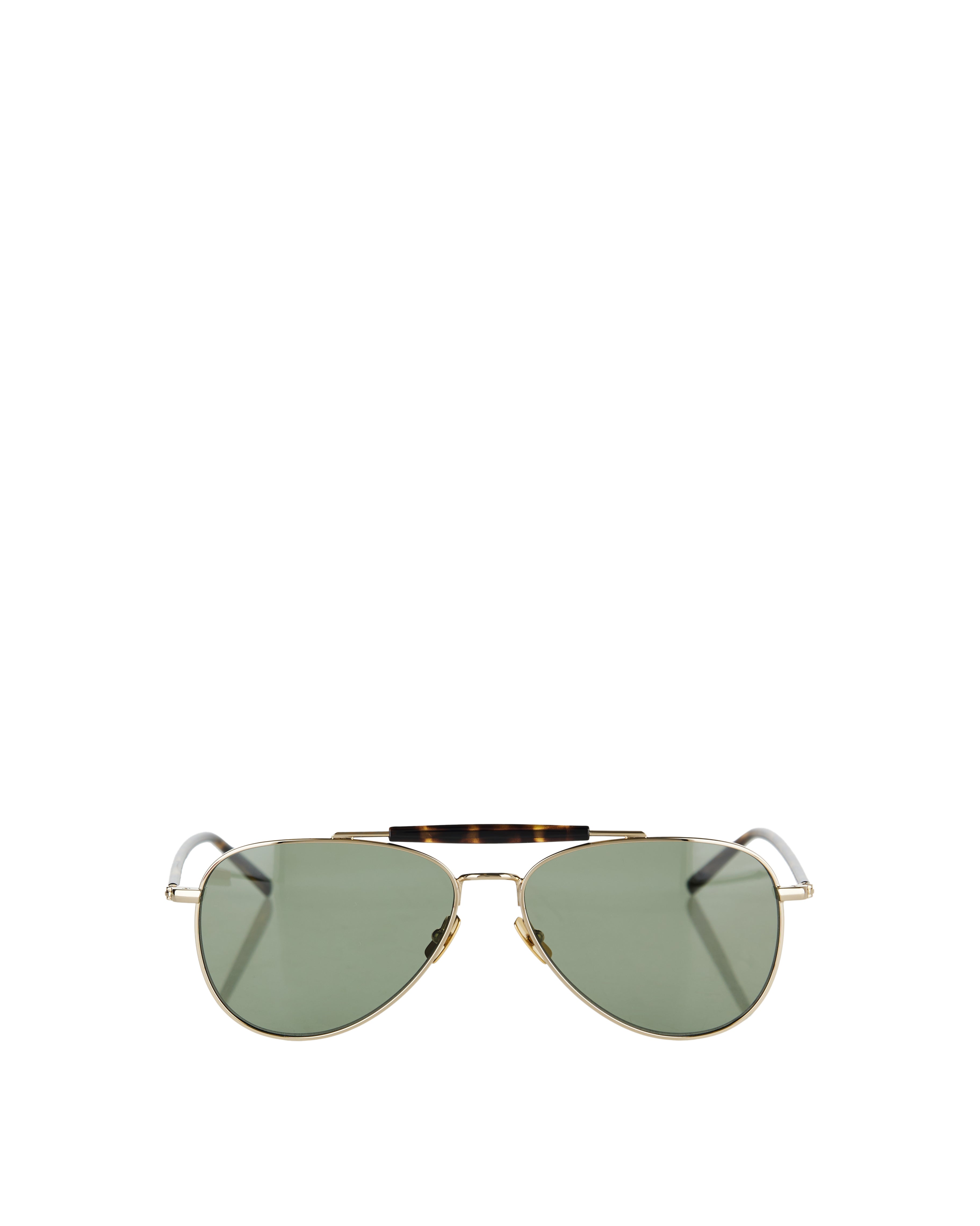 Classic aviator sunglasses crafted in gold-tone metal with green lenses and tortoiseshell-effect temples, balancing vintage attitude with sharp contemporary lines.- Gold-tone metal frame