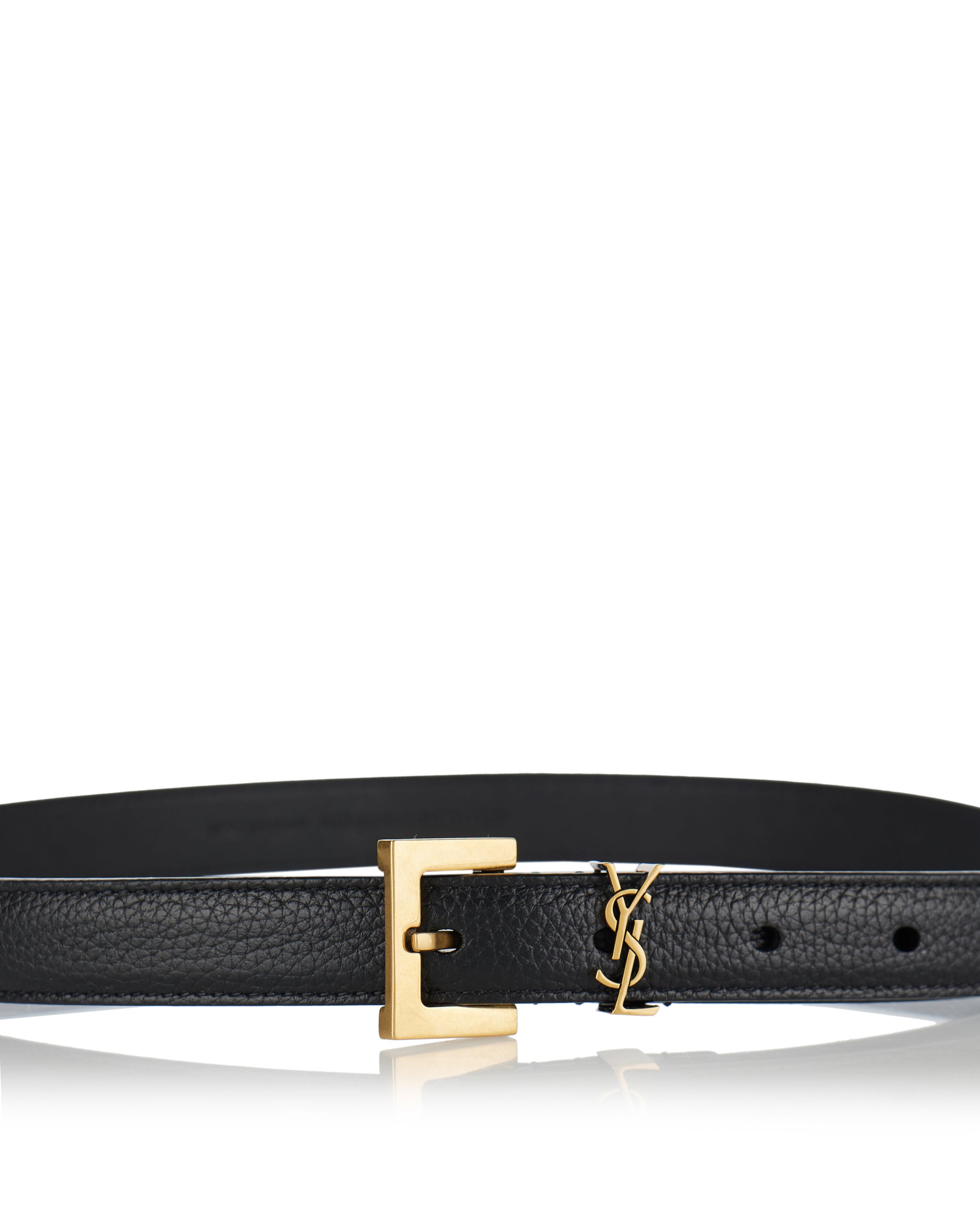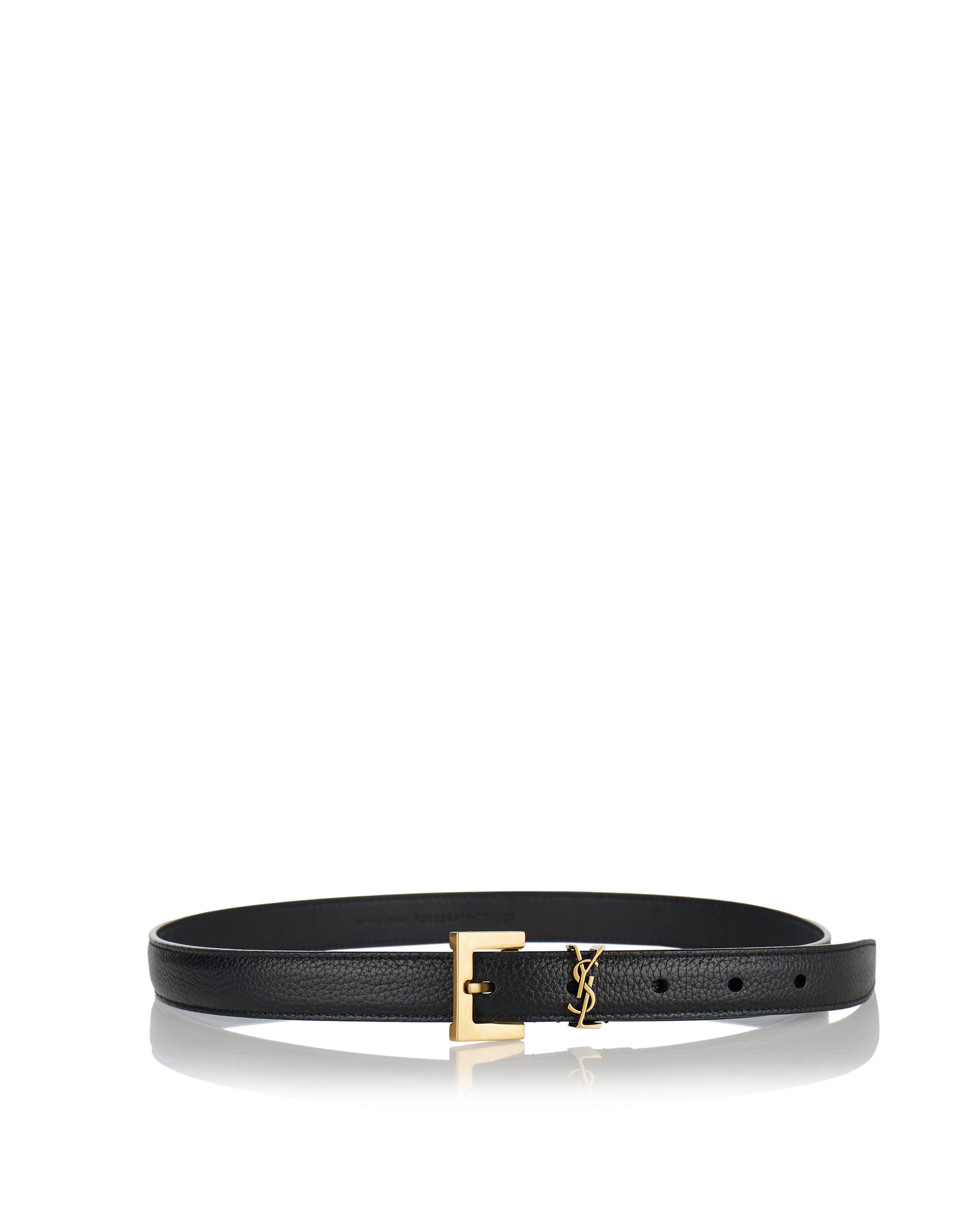 Thin belt crafted in textured grained leather, accented with the iconic Cassandre logo buckle in polished metal. A refined essential designed to define the waist with subtle yet unmistakable character.- Grained leather construction