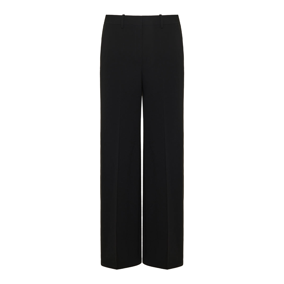 The fluid crepe flared trousers are refined essentials for a sleek, polished wardrobe — ideal for elevated workwear or sophisticated everyday outfits. Their softly draped crepe fabric and elongated leg create a flattering silhouette, while belt loops and subtle tailoring allow them to pair effortlessly with shirts, blazers or fine knits.
