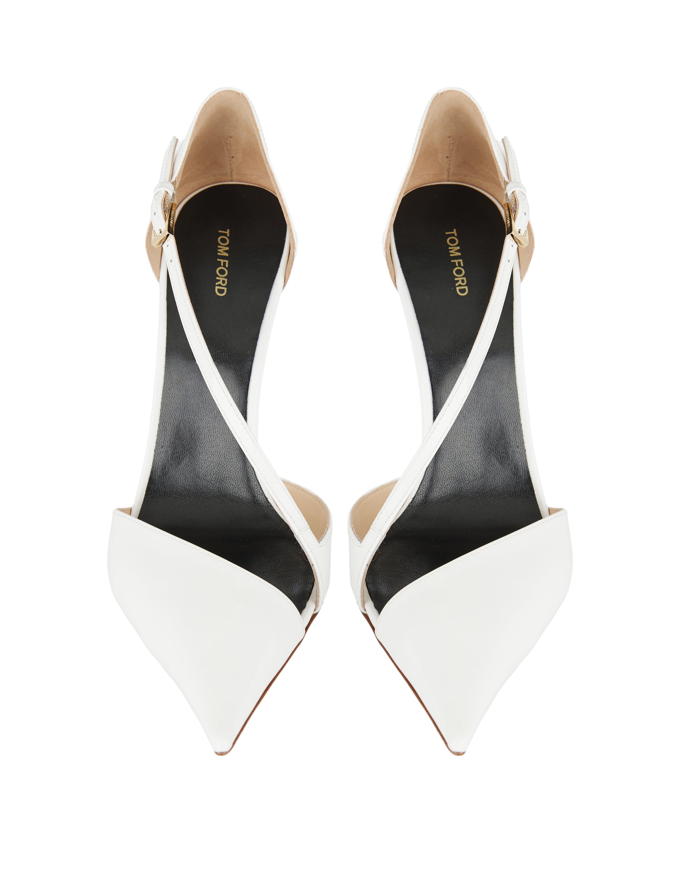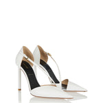 Sculptural pumps defined by an asymmetric silhouette and sharp lines, designed to elevate evening and tailored looks with modern precision.