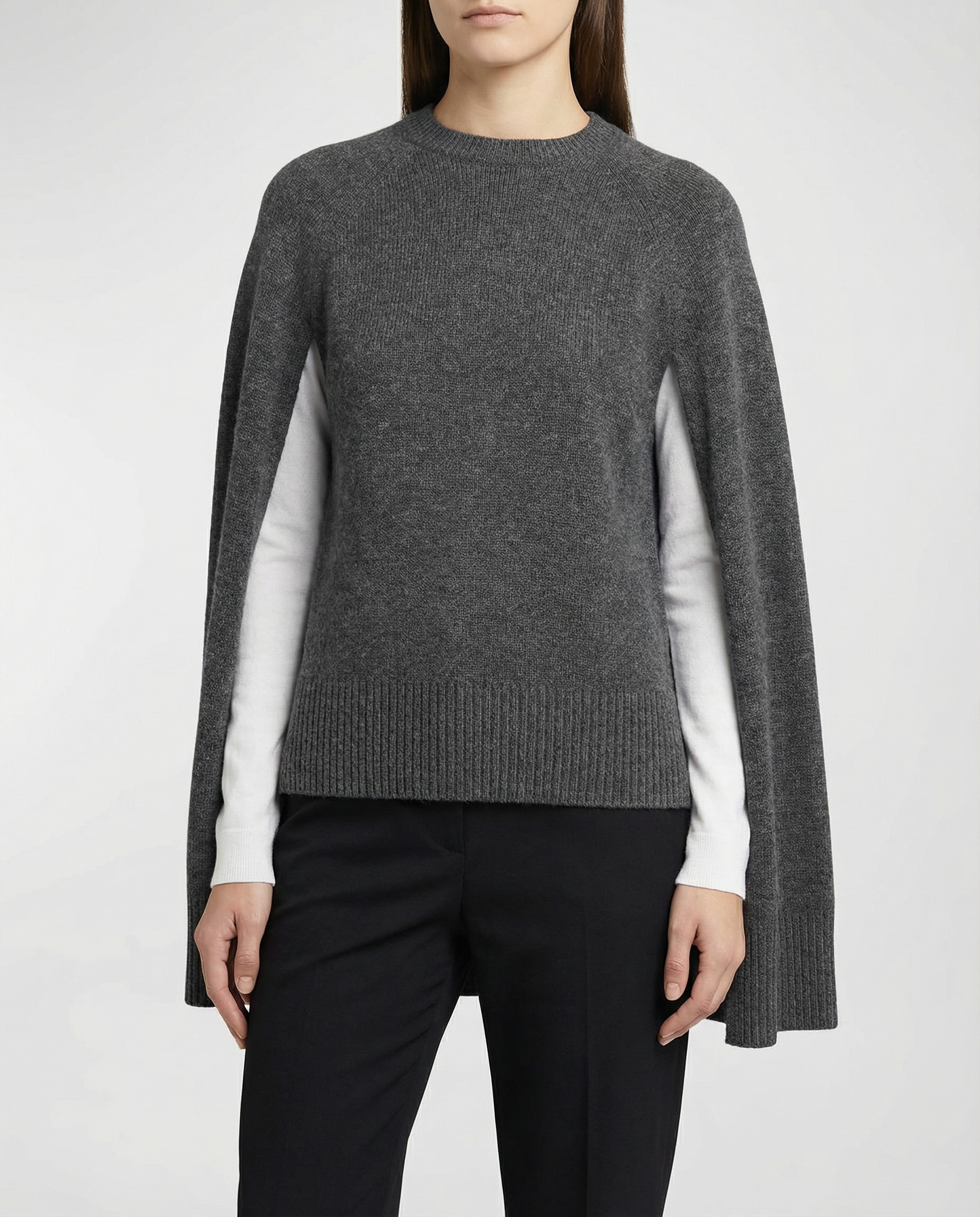 Luxuriously soft cashmere poncho cut from pure 100% cashmere with a ribbed hem and relaxed straight silhouette that falls below the hip. Its versatile layering style and understated Scandinavian elegance make it ideal for refined casual and elevated transitional wardrobes.