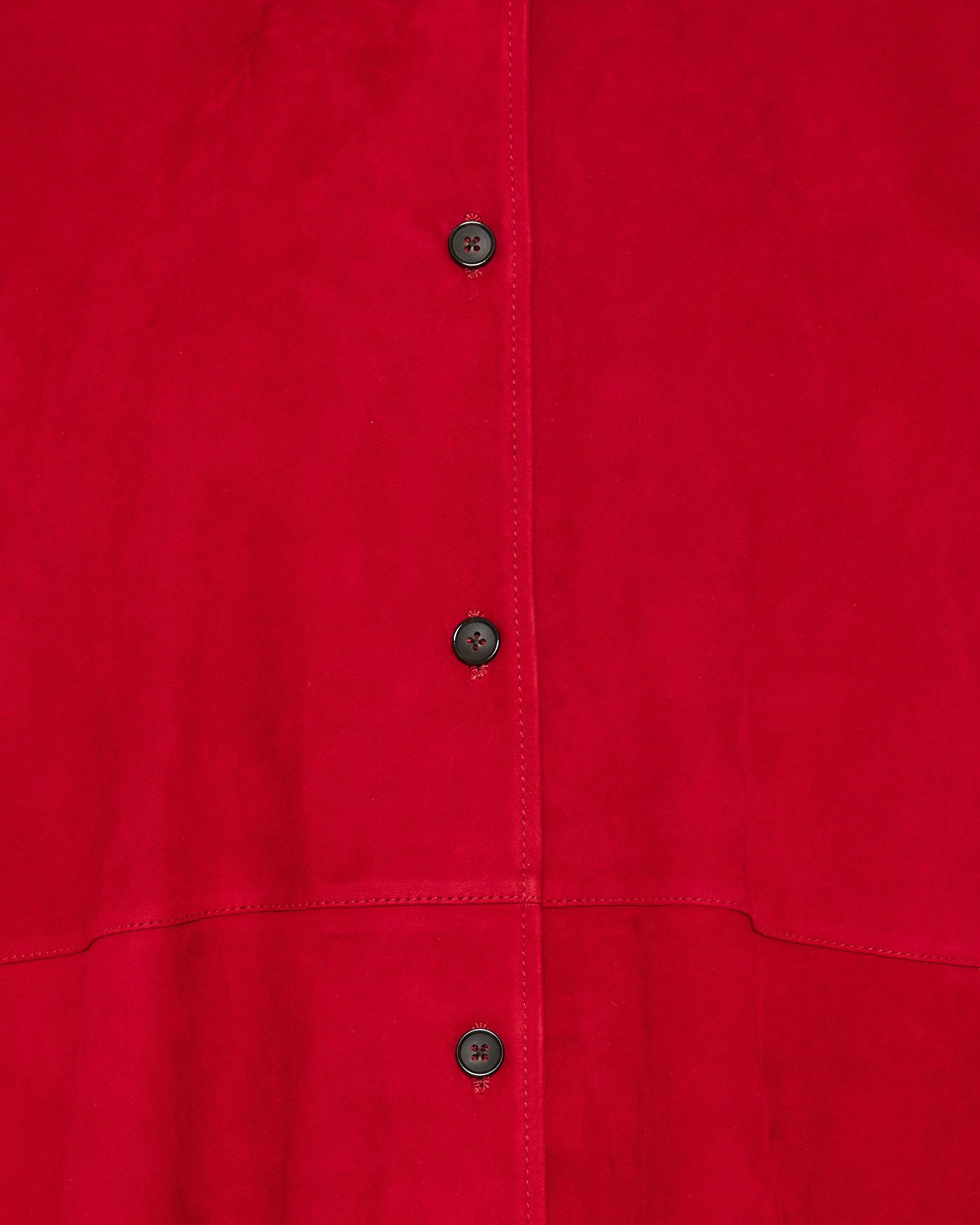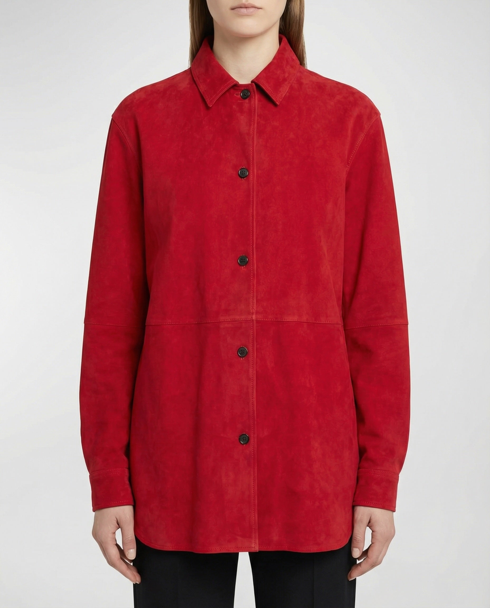 Refined suede overshit crafted from supple lambskin with a classic point collar and button‑through front for versatile styling. Cut for a relaxed, layering‑friendly silhouette, this elevated piece brings understated Scandinavian luxury to transitional and elevated casual wardrobes.
