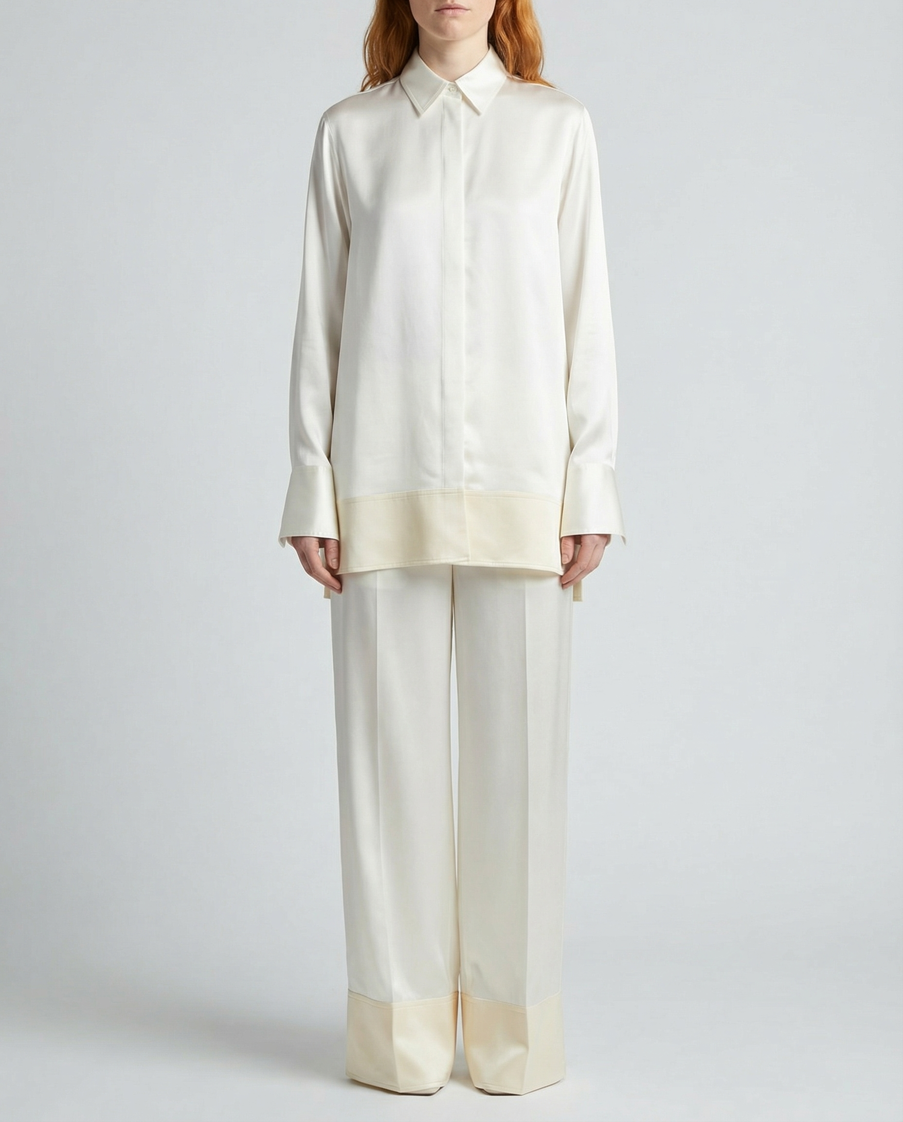 A fluid satin silhouette defined by its clean lines and understated elegance.