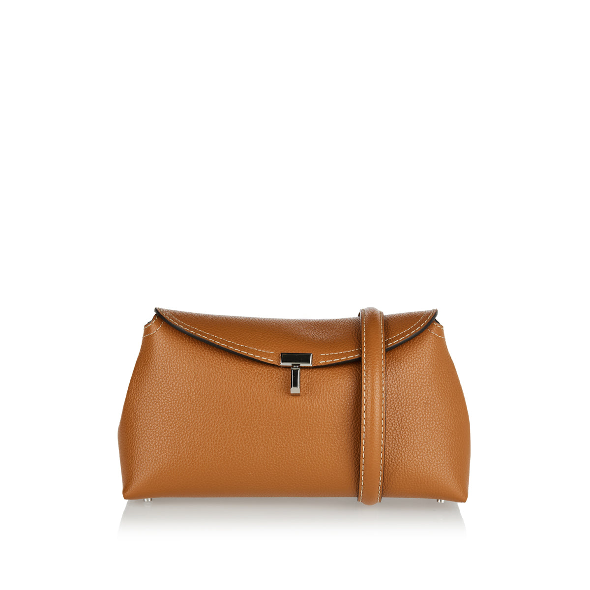 A sculptural clutch from Toteme, featuring the signature T-Lock twist clasp and crafted from supple pebble-grained leather. Ideal for formal occasions and evening events, this accessory offers a sophisticated touch to your ensemble.