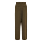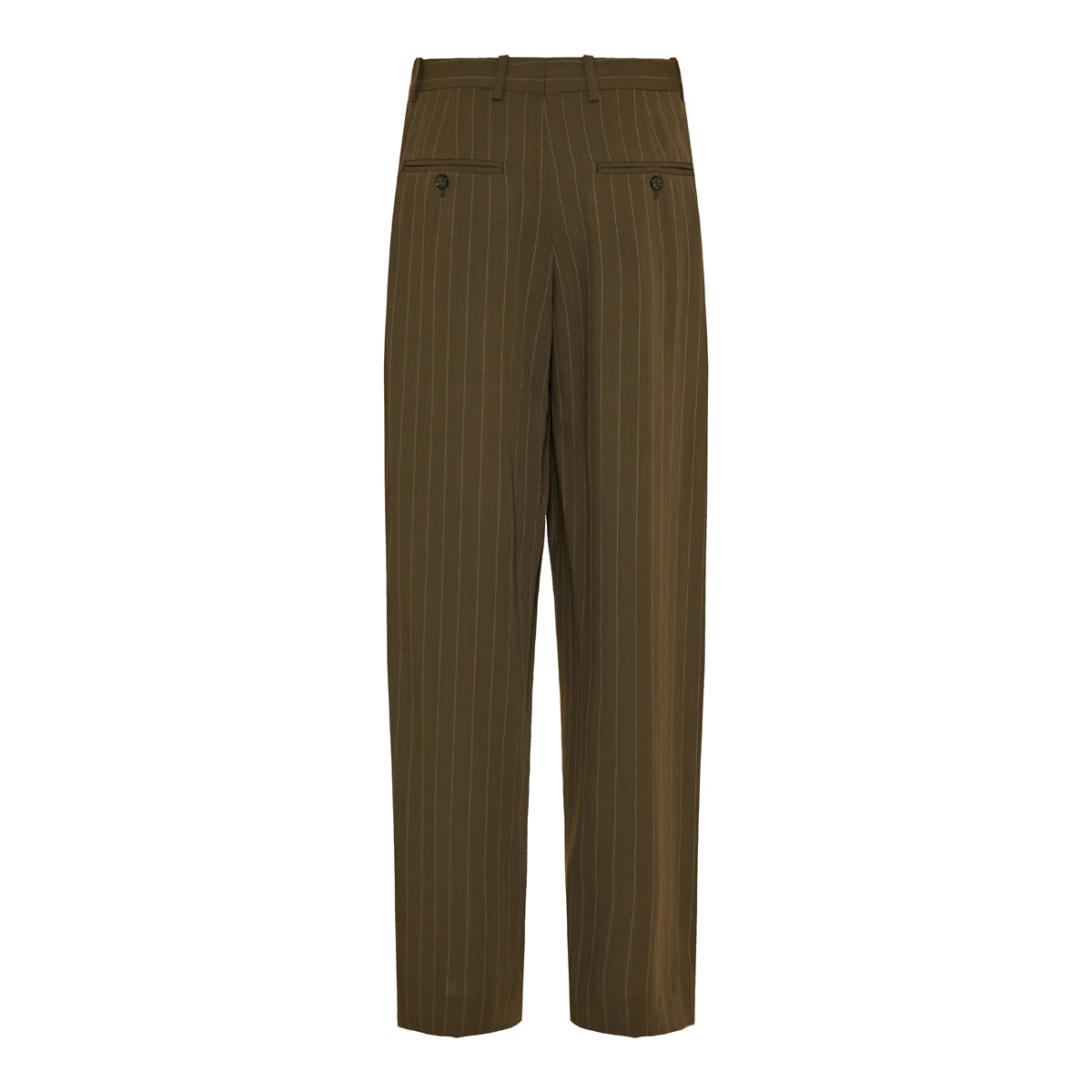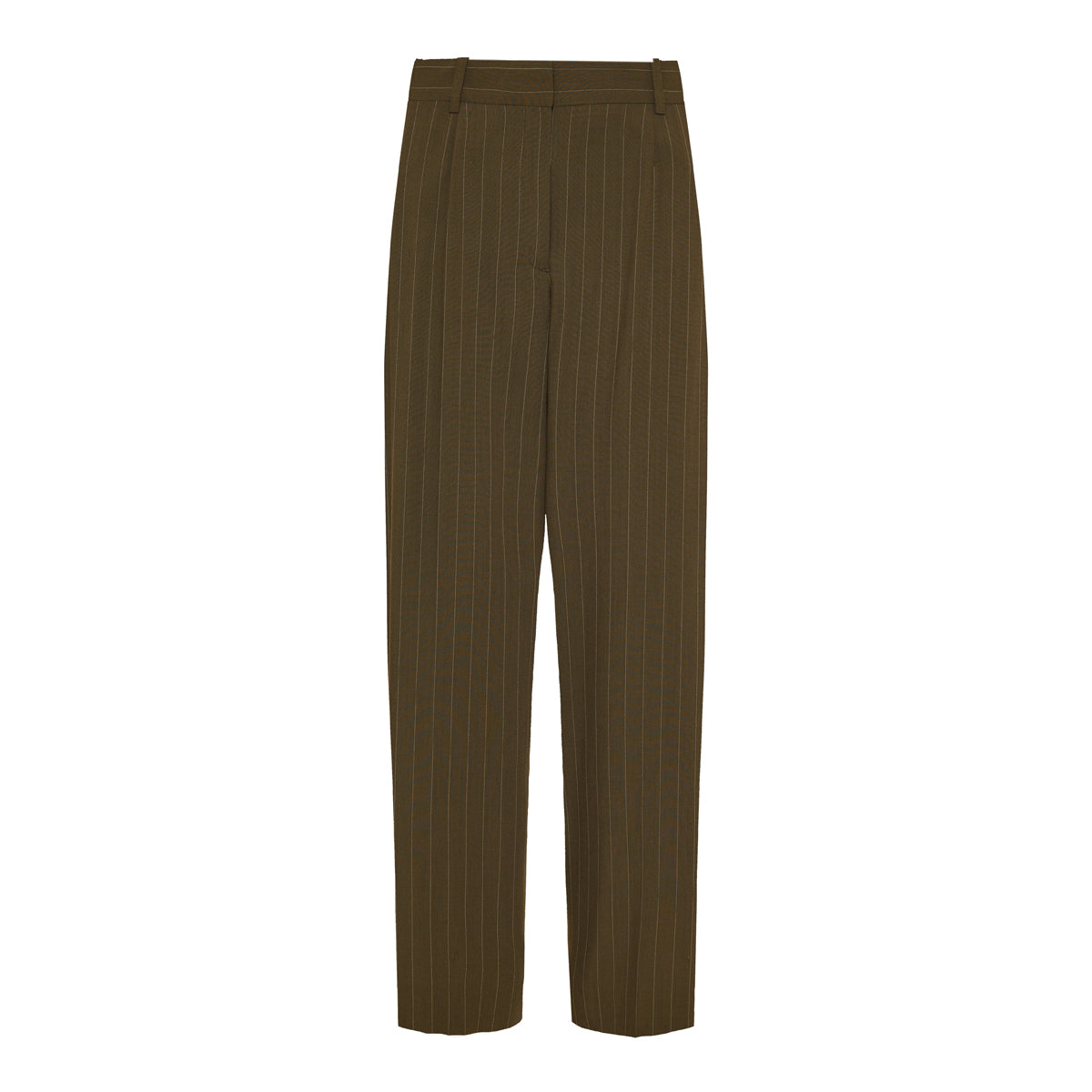 The Toteme Pinstripe Straight Pants in Green are tailored trousers crafted from a luxe blend of viscose, wool and a touch of polyester. They feature side slit and back pockets, a zip fly with button and hook fastening, and belt loops. Finished with subtle tapering at the hem, these straight leg pants offer refined elegance for workwear and elevated casual looks