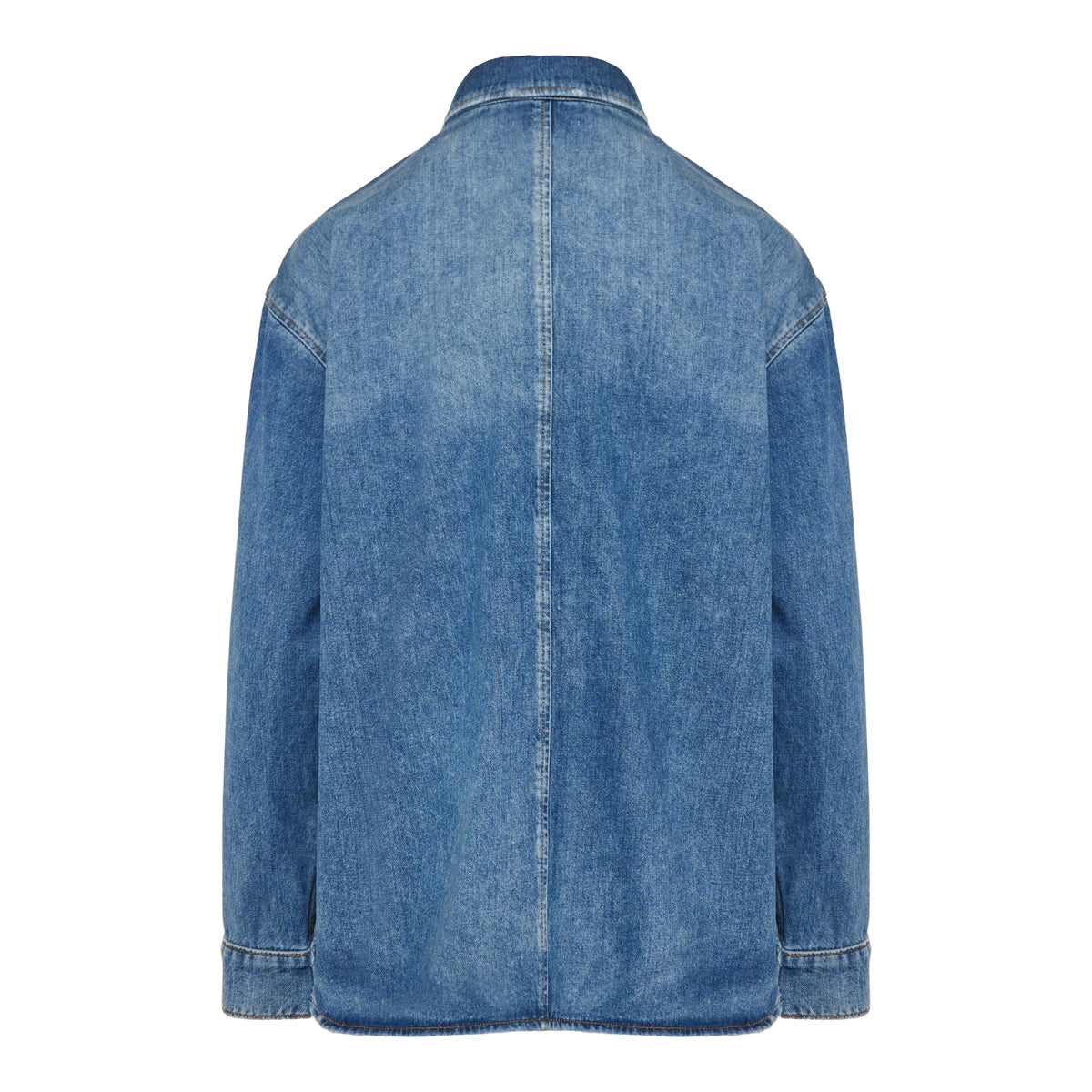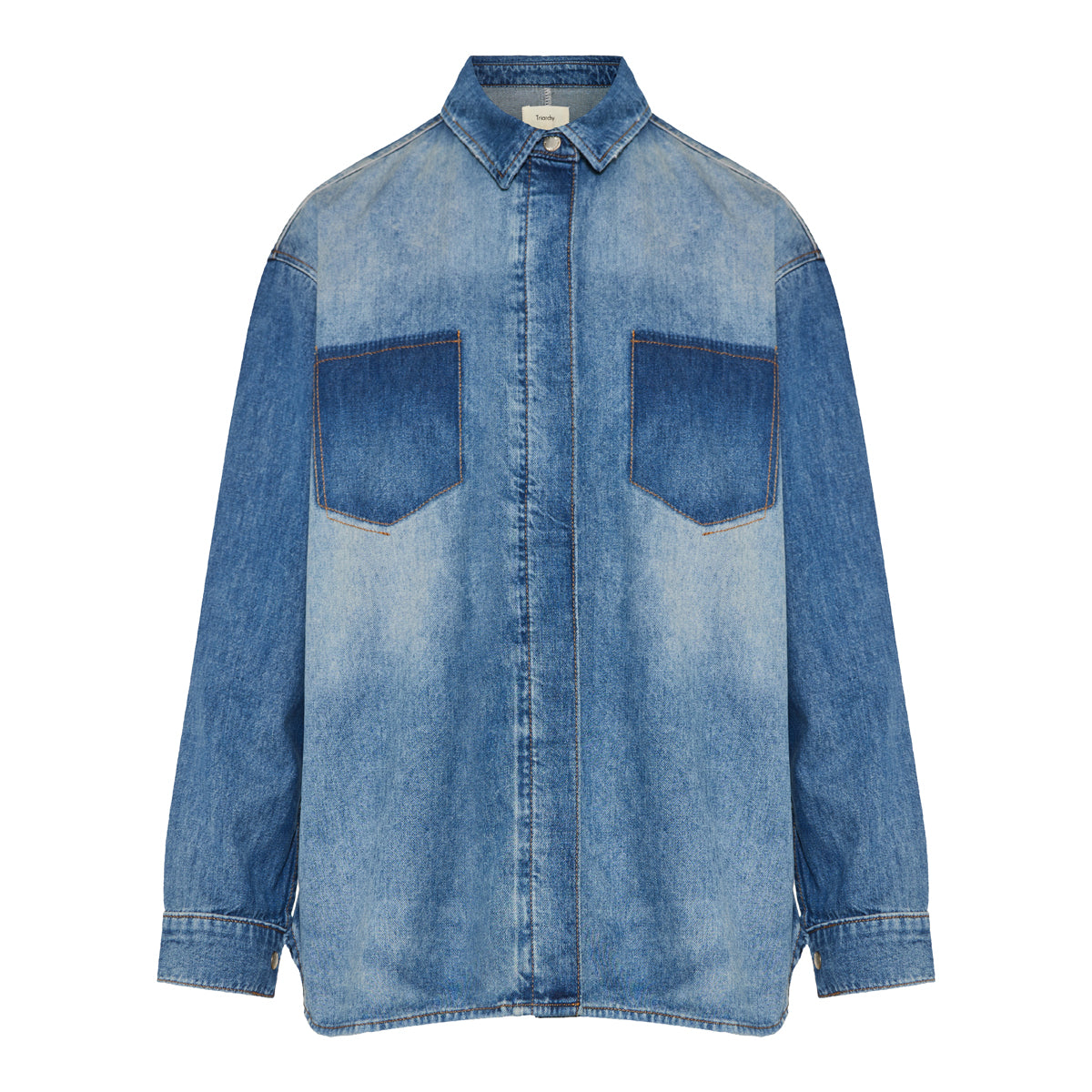 Crafted from 100% organic cotton, this oversized denim shirt features a relaxed fit with a pointed collar, dropped shoulders, and long sleeves. It offers a versatile and sustainable wardrobe staple.