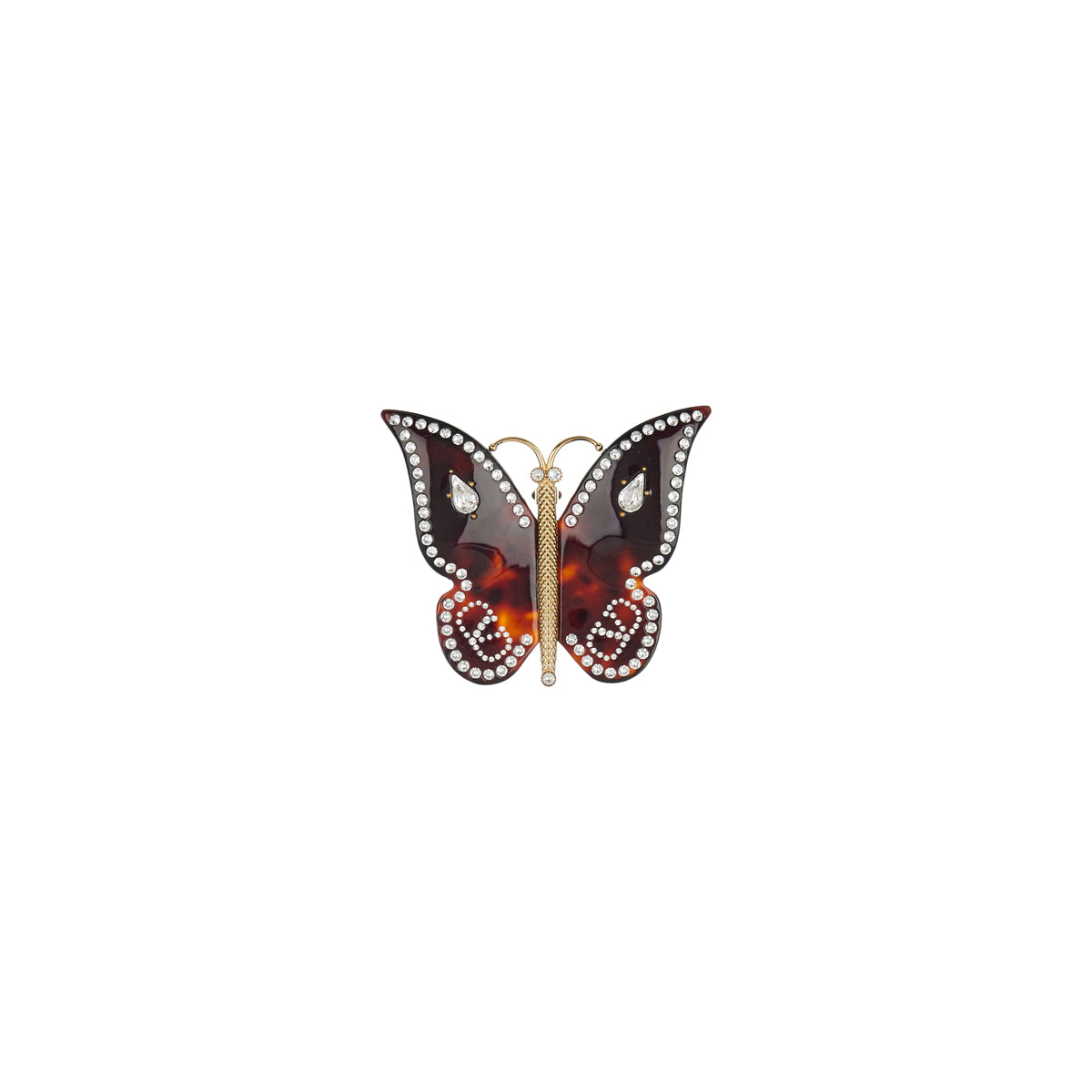 Elevate your ensemble with the Valentino Garavani Bellailes Brooch. Crafted in metal and resin, this exquisite piece is adorned with crystals, featuring a gold-tone finish and a signature VLogo detail. A sophisticated blend of elegance and modernity, it effortlessly transforms any outfit with its refined butterfly design.