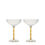 Set of two coupe glasses defined by sculptural bamboo-inspired stems and a solid amber tone, designed to elevate cocktails and sparkling moments with joyful sophistication.