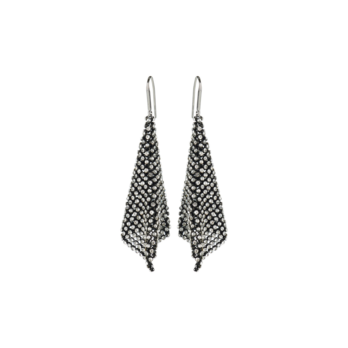 The Ava Earrings by Isabel Marant are mini stud pendant earrings crafted from a blend of aluminum, glass, and brass. They feature a hook clasp for secure wear. With a sleek black and silver color palette, these earrings add a touch of elegance to any ensemble.