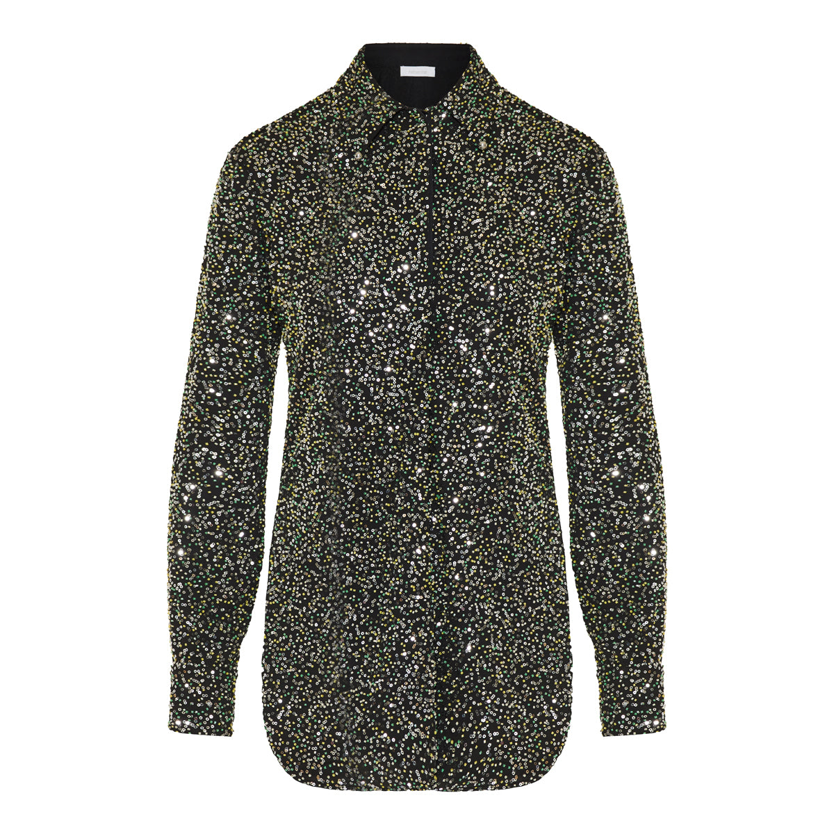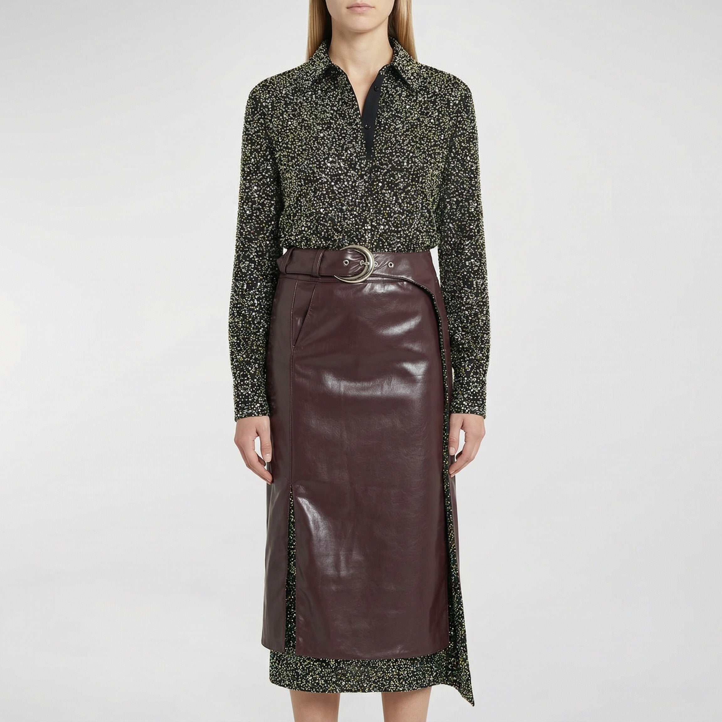 The Paco Rabanne Sequin-Embroidered Crepe Shirt is a statement piece that seamlessly blends classic tailoring with avant-garde embellishment. Crafted from luxurious crepe, this shirt features intricate sequin embroidery that adds a touch of glamour to its structured silhouette. Ideal for both day and evening wear, it embodies the brand's commitment to innovative design and timeless elegance.