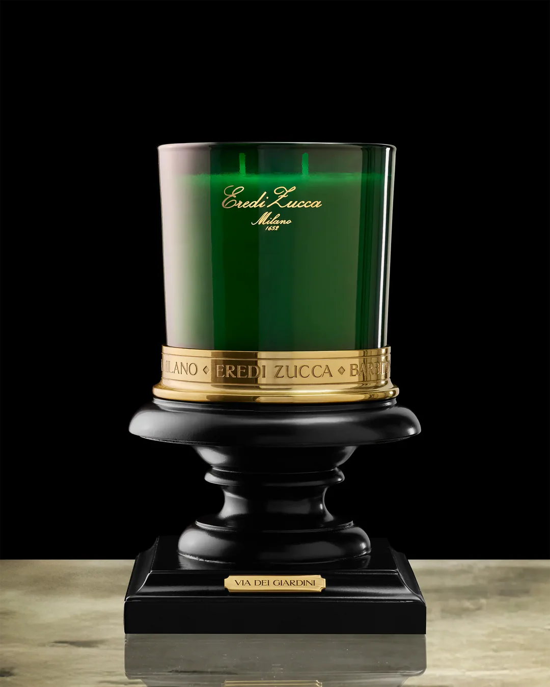 Base: zamak with decorative Eredi Zucca brass accents, combining stability with artisanal elegance