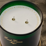 Decorative scented candle defined by a refined woody-botanical fragrance, designed to infuse interiors with layered citrus, floral, and warm woody notes.