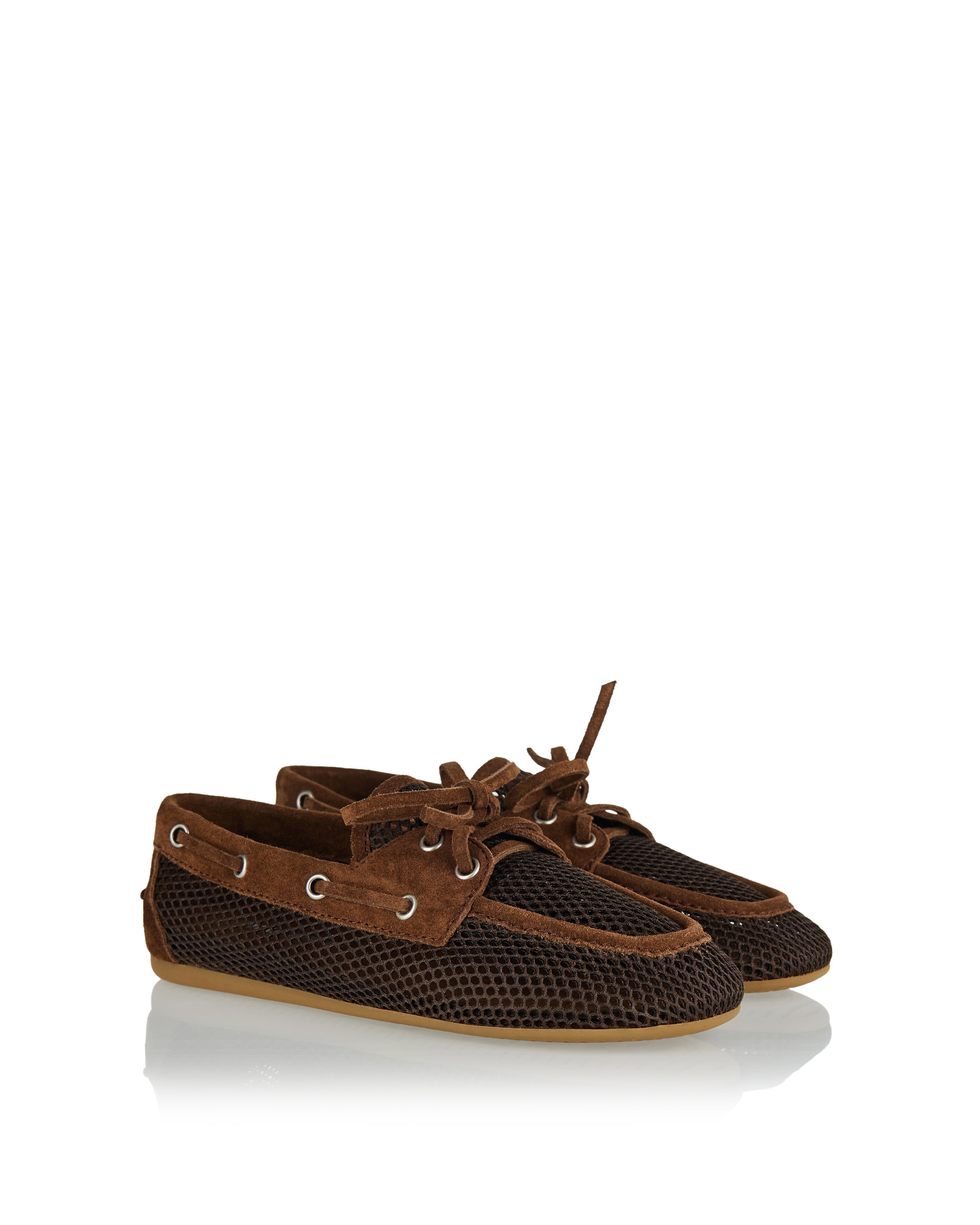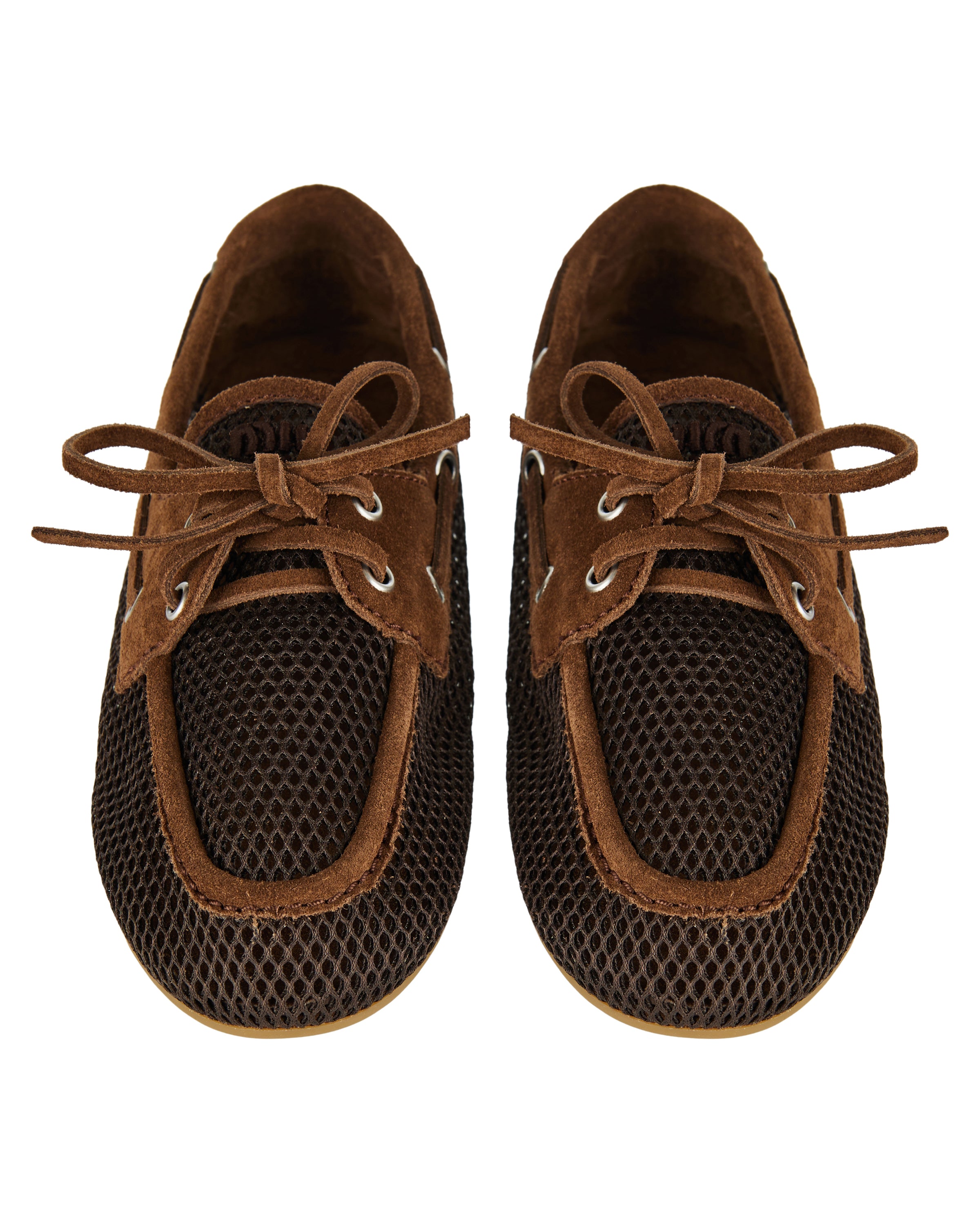 Blending relaxed elegance with a modern sensibility, these loafers reinterpret a classic silhouette through Miu Miu’s distinctive lens. Crafted with a lightweight mesh construction and suede detailing, they offer breathability and a soft, flexible feel. The lace-up front adds a casual note, while the refined shape keeps the look polished. Suitable for everyday wear, warm-weather styling, and effortless city looks, they balance comfort with understated sophistication.