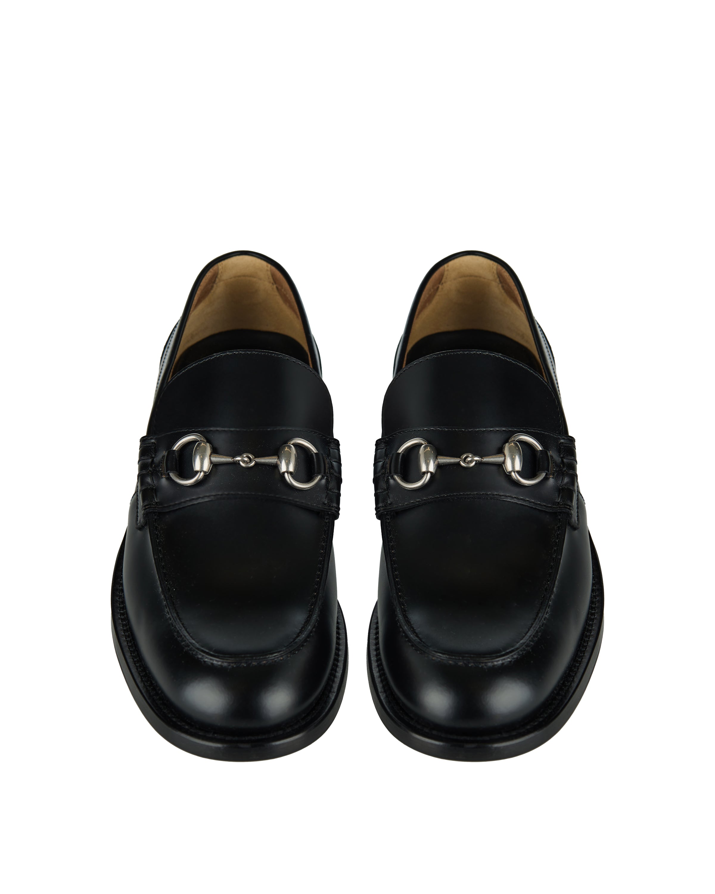 A timeless loafer crafted from smooth leather, defined by its iconic horsebit detail across the vamp. The sleek, almond-shaped silhouette delivers understated elegance, while the low stacked heel ensures all-day comfort. Finished with a leather sole, this design transitions effortlessly from formal tailoring to relaxed, modern looks.