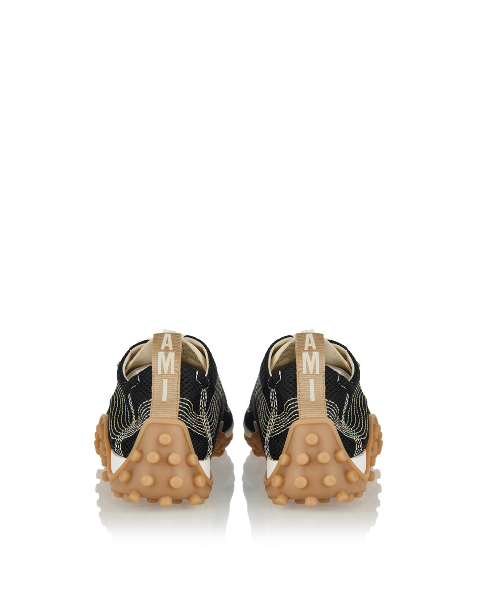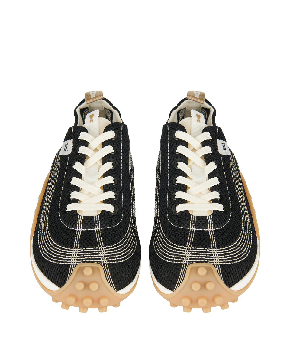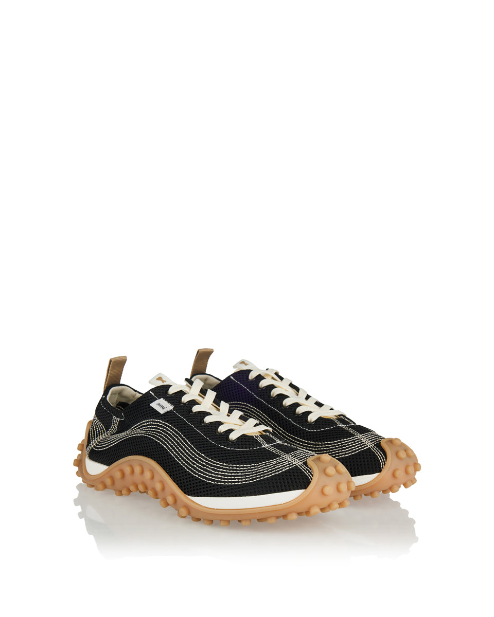 A contemporary sneaker crafted from breathable mesh, blending casual comfort with AMI Paris’ minimalist aesthetic.