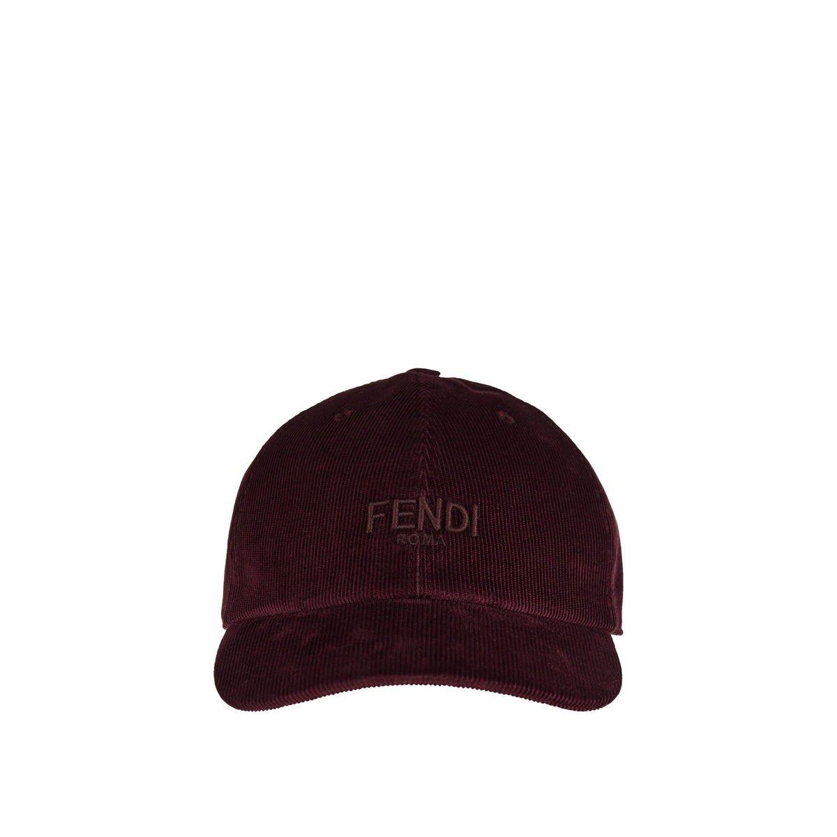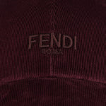 A refined and contemporary baseball cap from Fendi crafted in rich burgundy corduroy with a semi-stiff peak. It features a Velcro closure at the back for adjustable fit and a tonal embroidered Fendi logo at the front, offering a blend of understated luxury and heritage style. Ideal for elevated casual wear.