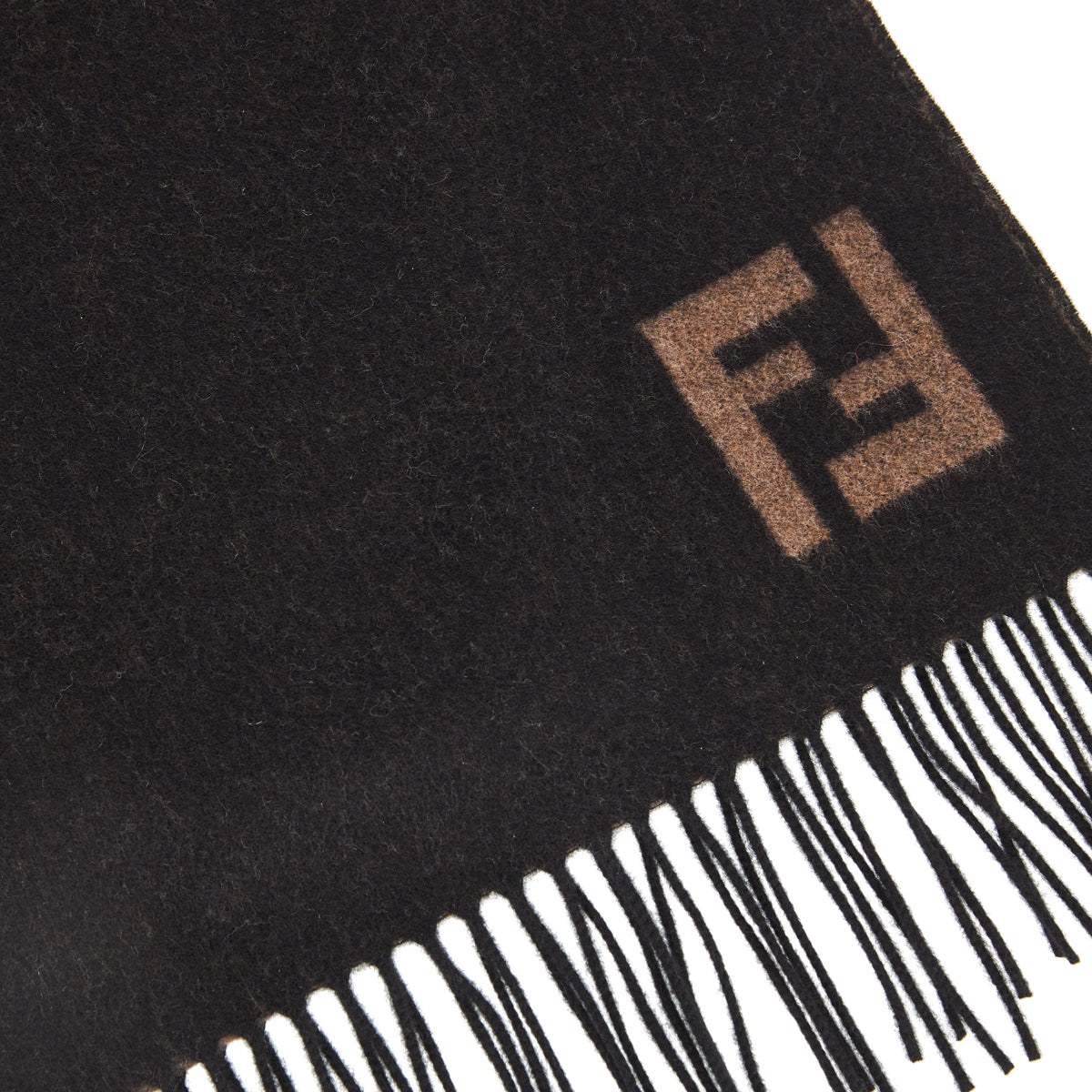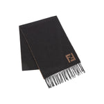 An elegant rectangular scarf by FENDI crafted from a rich wool‑cashmere blend, with contrasting reversible colourways and fringed edges — ideal for refined layering in luxury wardrobes.