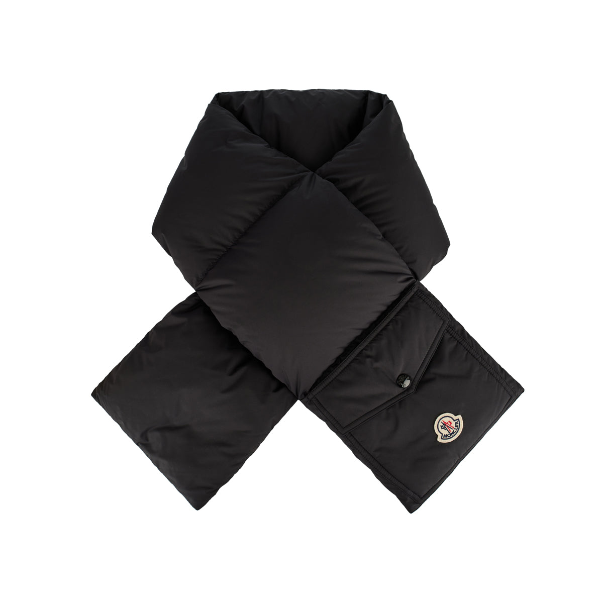Moncler’s down packable scarf blends functional design with luxurious comfort. Crafted in lightweight technical nylon, it is filled with insulating down for superior warmth and protection against cold weather. Its sleek black finish and discreet tonal logo make it versatile for casual layering, while the packable design ensures easy portability, making it a practical yet elevated winter essential.