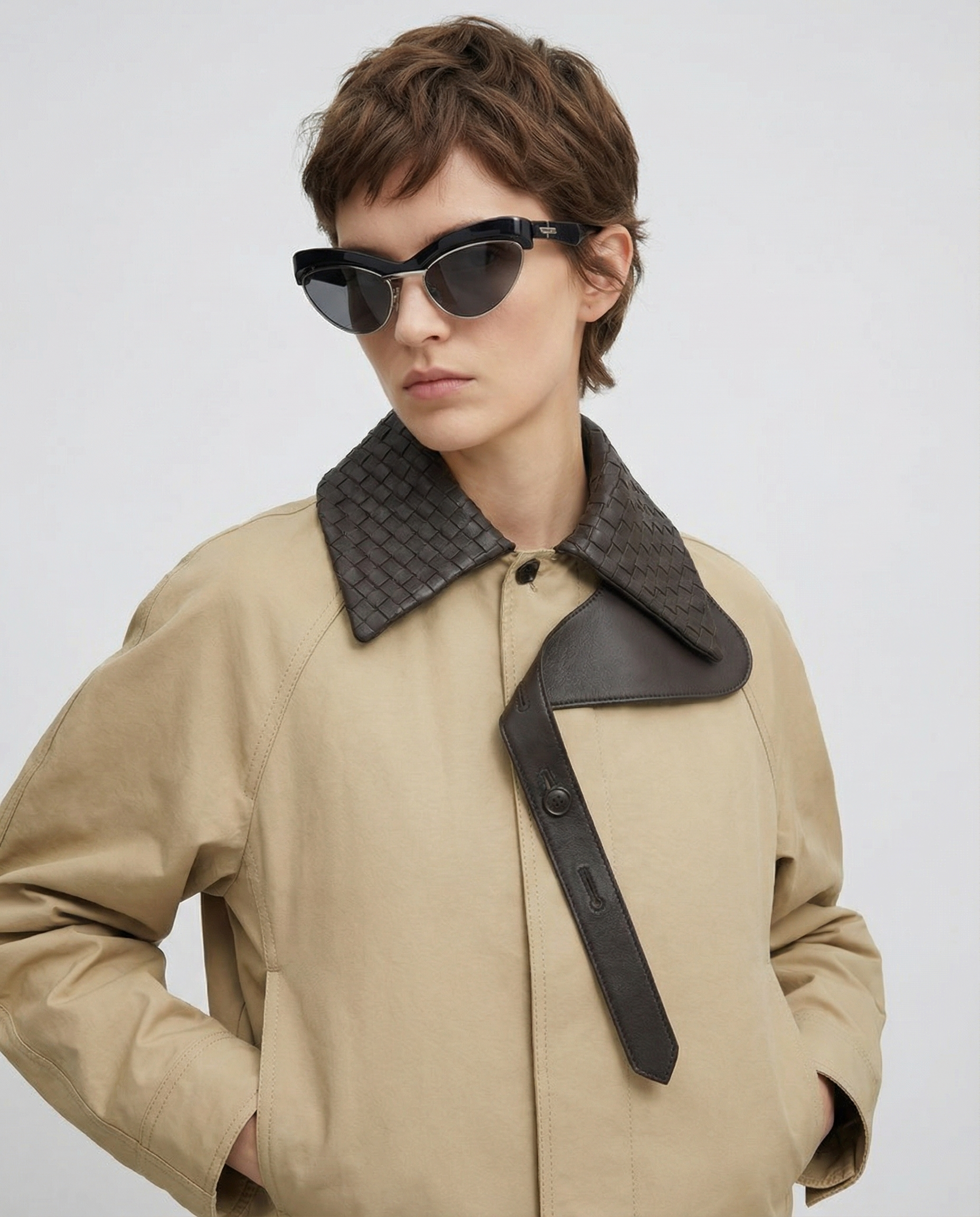 A sculptural cat-eye silhouette crafted in acetate, featuring a layered frame design and clean, angular lines for modern sophistication.