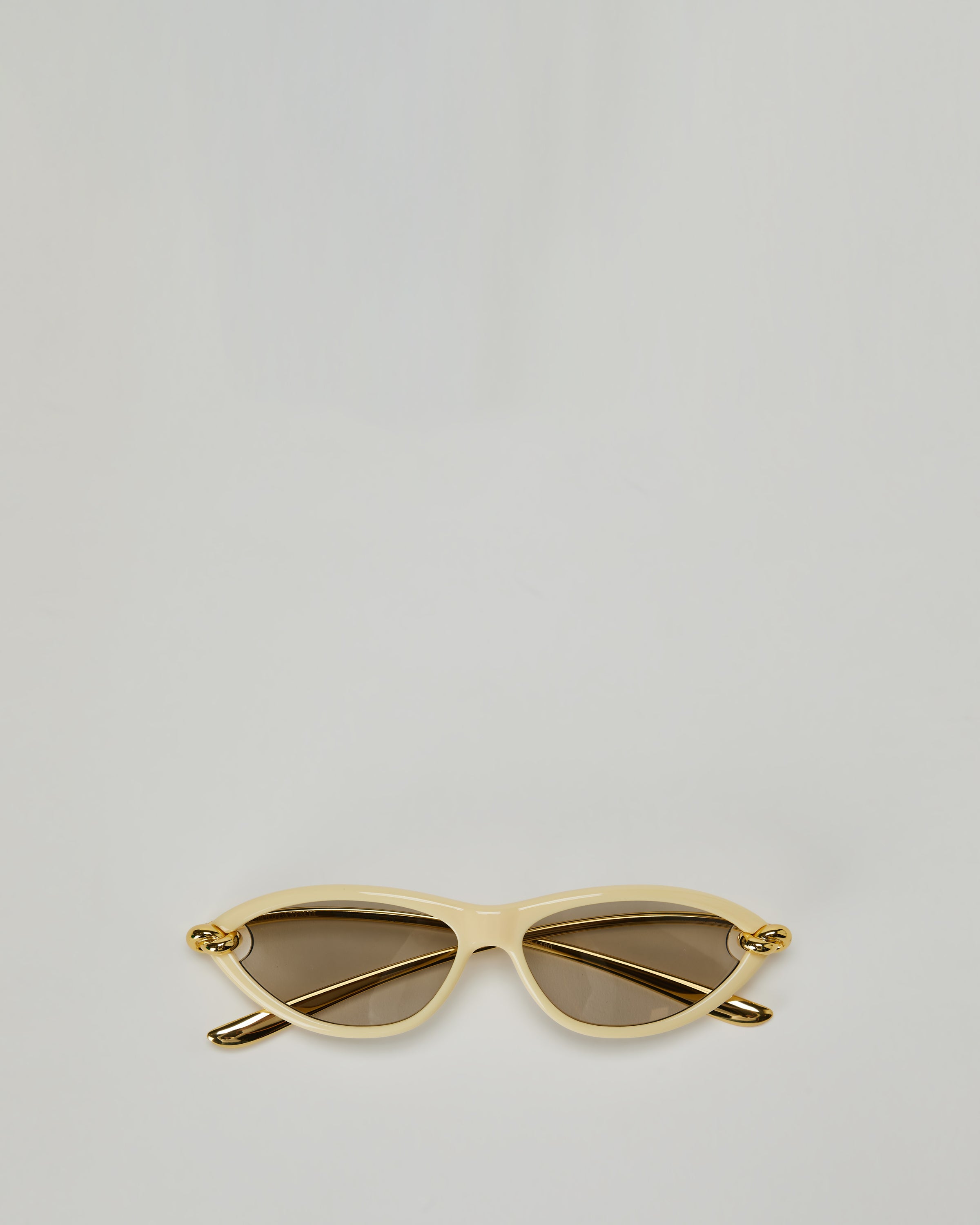 A sculptural accessory defined by sharp cat-eye lines and signature knot detailing, offering a bold, modern finish.