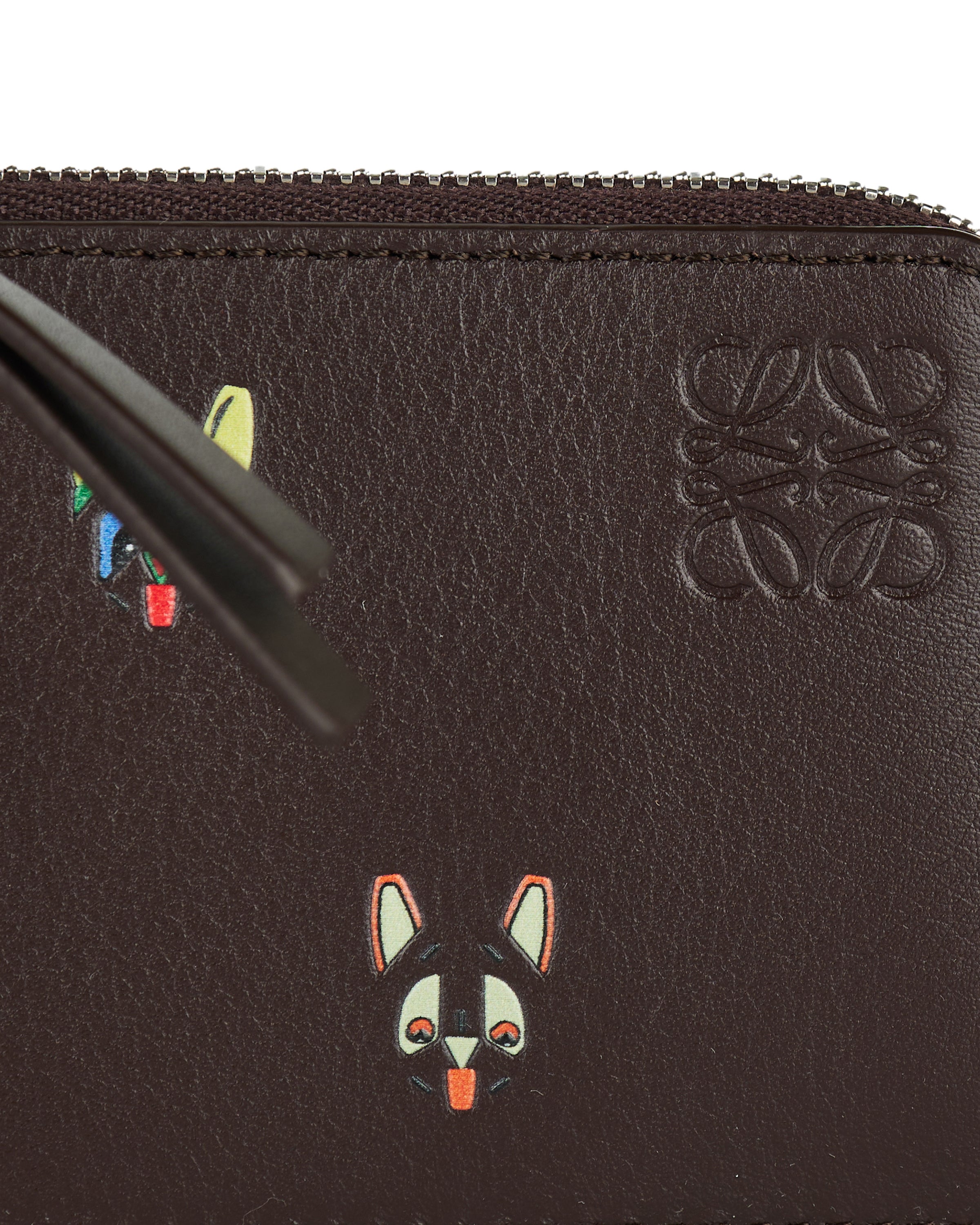 Elegant cats coin cardholder crafted from classic calfskin leather featuring all‑over 3D‑effect cat prints inspired by Louis Wain’s “Futurist Cats” series. With a zippered coin compartment and multiple card slots, this refined accessory brings contemporary Spanish craftsmanship and playful artistry to elevated everyday and travel wardrobes.