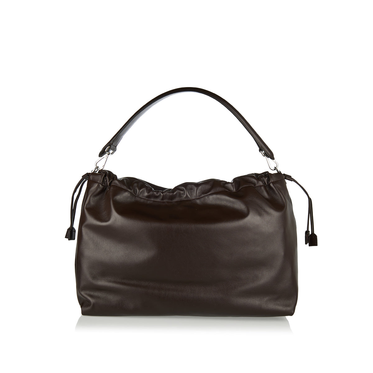 The Maxi Mamma Baguette from Fendi reimagines one of the house’s most iconic shapes in a larger, contemporary format. Crafted in smooth black leather, it features a structured silhouette enhanced by the signature FF magnetic clasp. A versatile design that can be worn by hand, over the shoulder, or crossbody thanks to its adjustable strap, making it the perfect companion for both day and evening refinement.