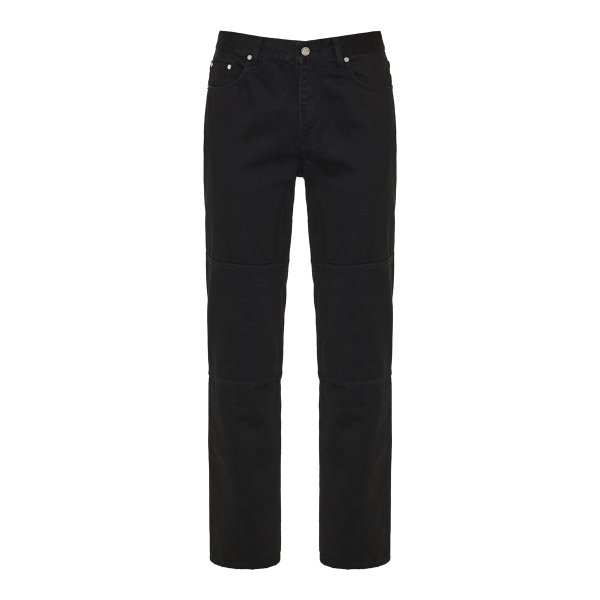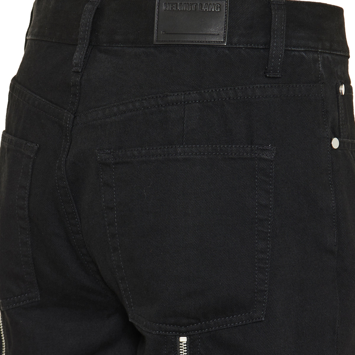 These Helmut Lang Zip Carpenter Jeans feature a relaxed fit with full-length zippers along the back, allowing you to control the volume of the leg. Crafted from 100% cotton denim in a rinsed black finish, they offer a utilitarian aesthetic with classic five-pocket styling and a leather logo patch at the back.