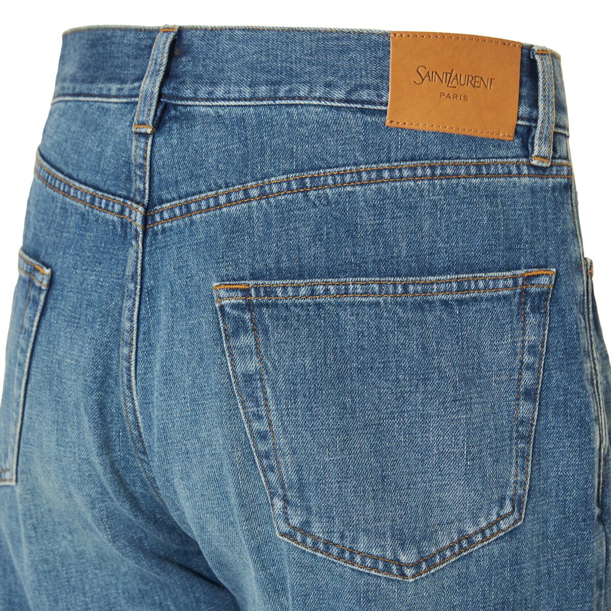 The Mick Long jeans from Saint Laurent are made in Italy from pure cotton denim in a Norwegian blue wash. Cut to a straight-leg silhouette with a mid-rise waist, they offer a timeless fit that pairs effortlessly with both tailoring and casual looks.