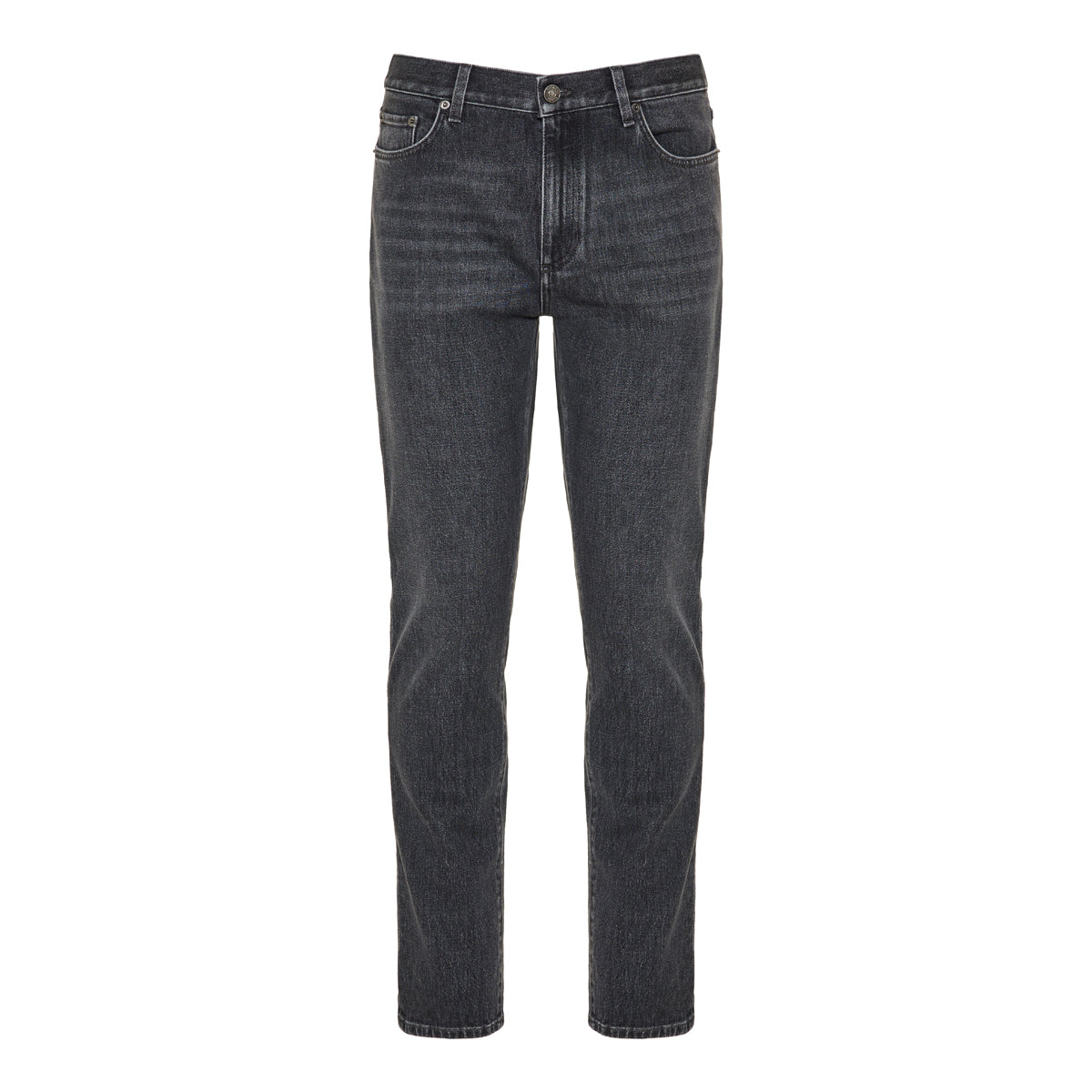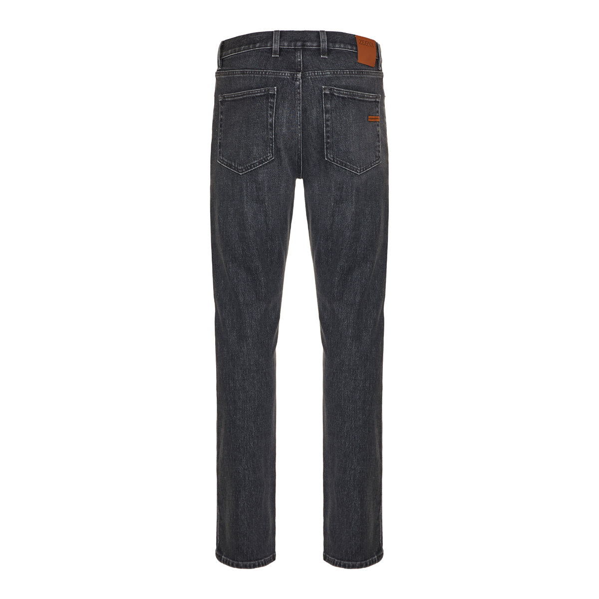 Crafted from a premium cotton blend, these Zegna jeans in dark grey offer a modern yet timeless silhouette. Featuring a slim fit, classic five-pocket styling, and subtle fading for a worn-in appeal, they are finished with a leather logo patch at the back waist and a signature stitched detail on the rear pocket. Versatile and refined, these jeans pair effortlessly with casual and tailored looks alike.