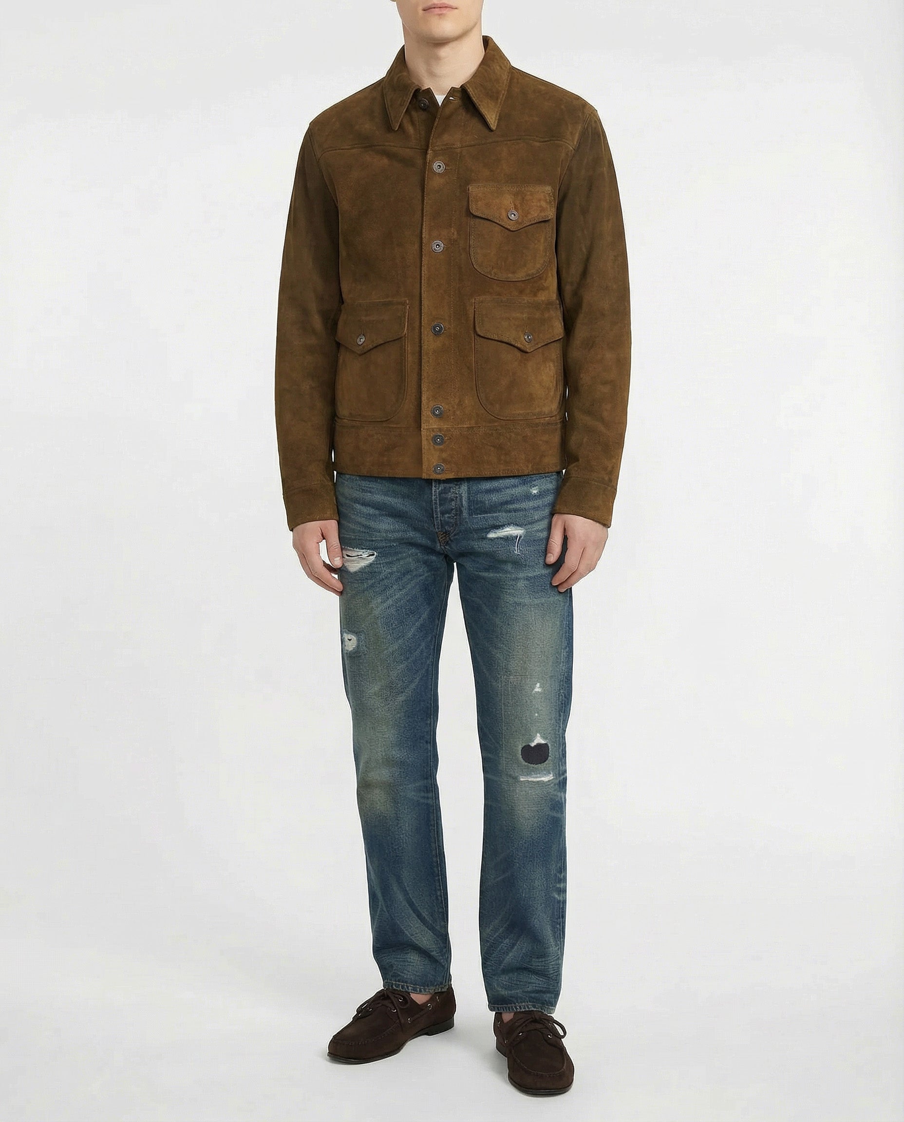 A rugged essential with unmistakable Western spirit, this suede shirt jacket by RRL blends craftsmanship with effortless masculinity.
