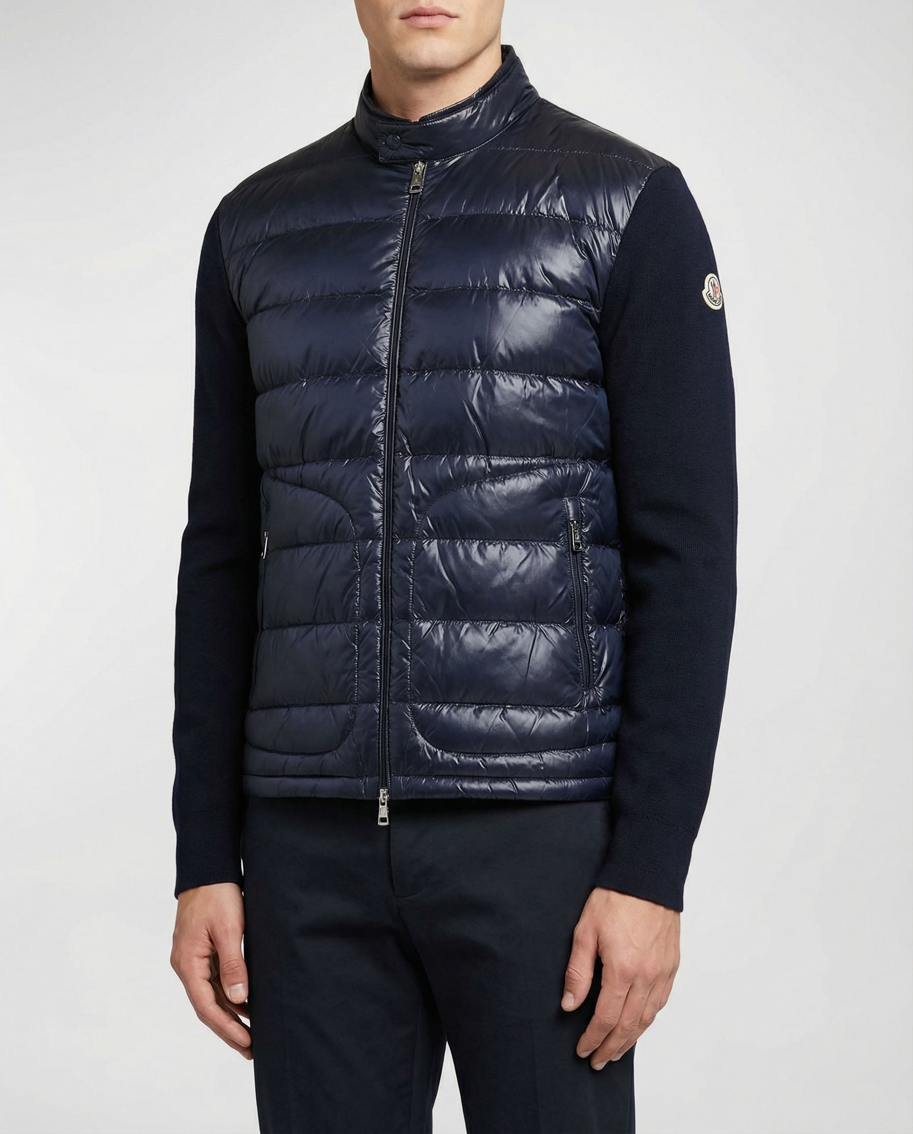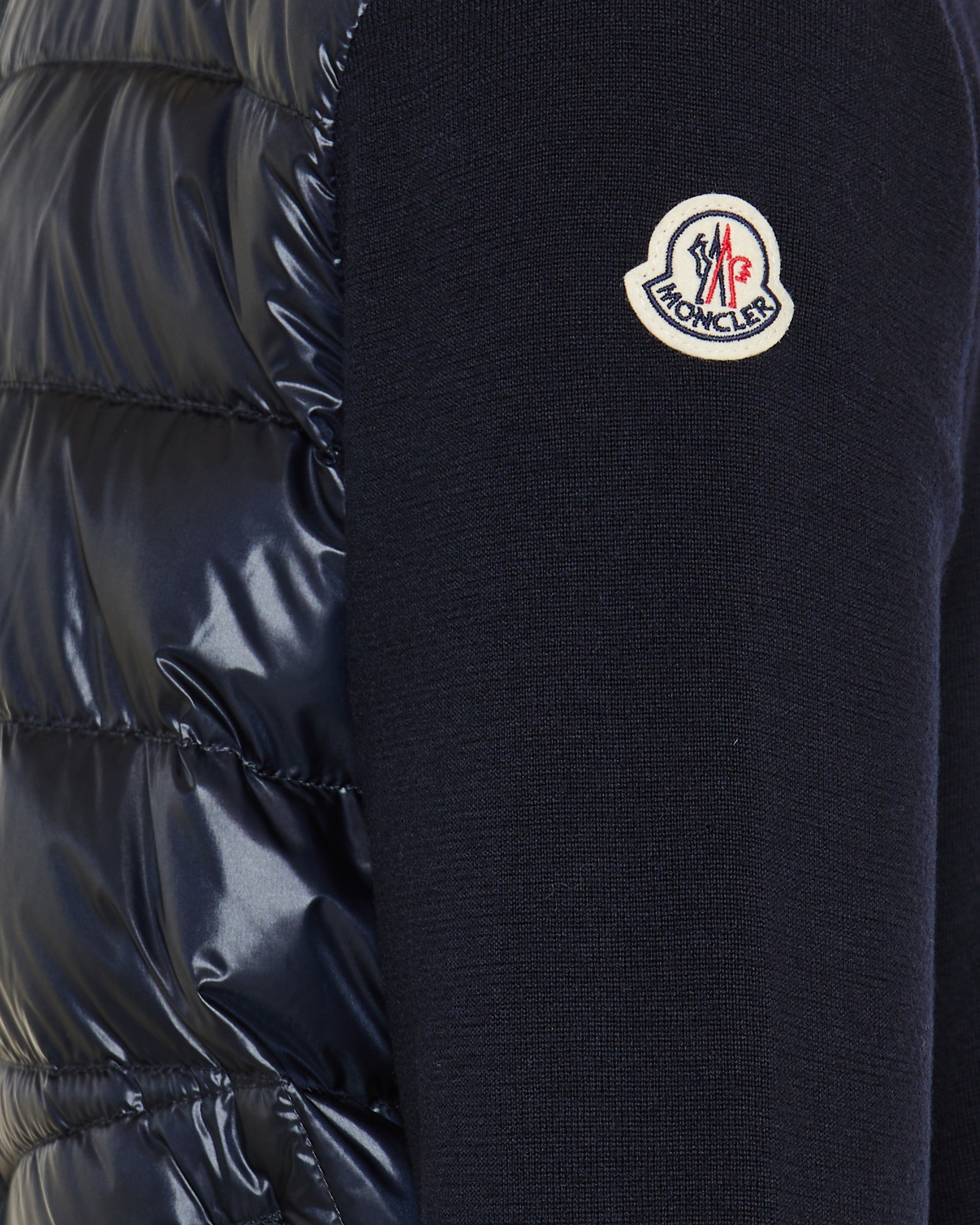 A refined hybrid layer that blends knitwear elegance with functional padding, showcasing Moncler’s signature balance of comfort and performance.