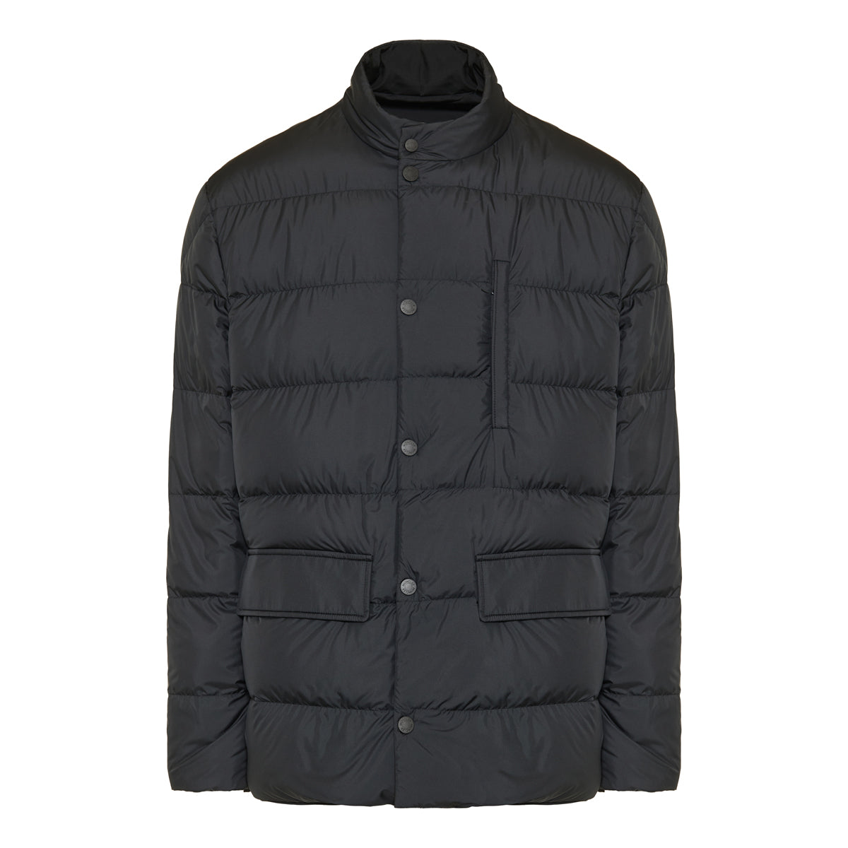 The Moncler Ouille reversible down jacket showcases the label’s signature blend of innovation and luxury. Crafted from lightweight technical nylon, this versatile piece features a reversible design — one smooth, one quilted — offering two distinct looks in one. Filled with premium down for optimal warmth without bulk, it’s detailed with a stand collar, tonal logo patch, and practical zip pockets for urban functionality. Perfect for transitional weather and city layering.