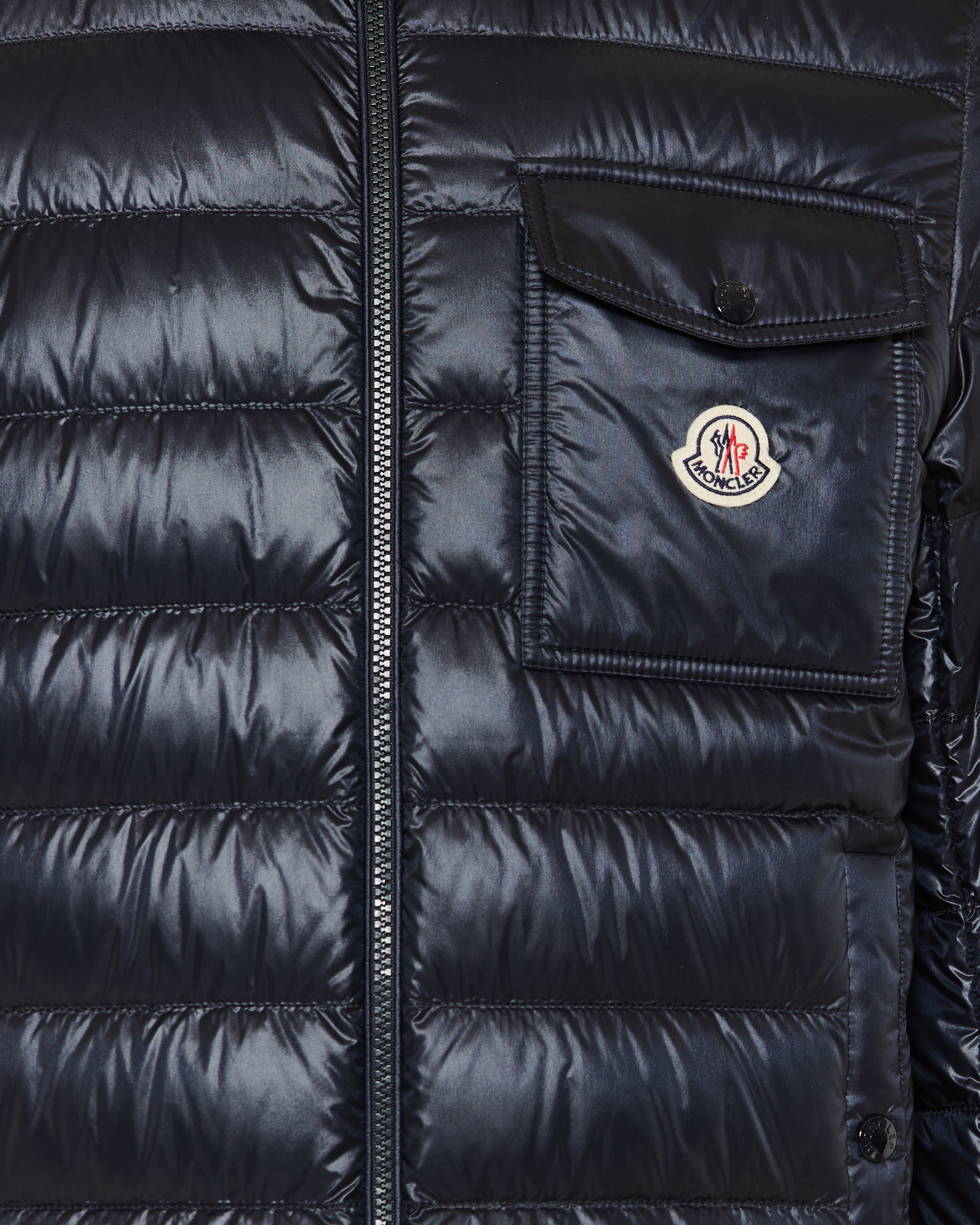 A refined hybrid piece that combines the structure of a shirt with the warmth of a down jacket, showcasing Moncler’s signature technical craftsmanship.